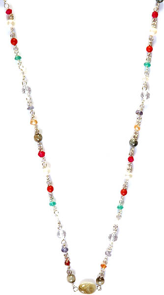 Navaratna Long Necklace with Dangling Gemstone Beads