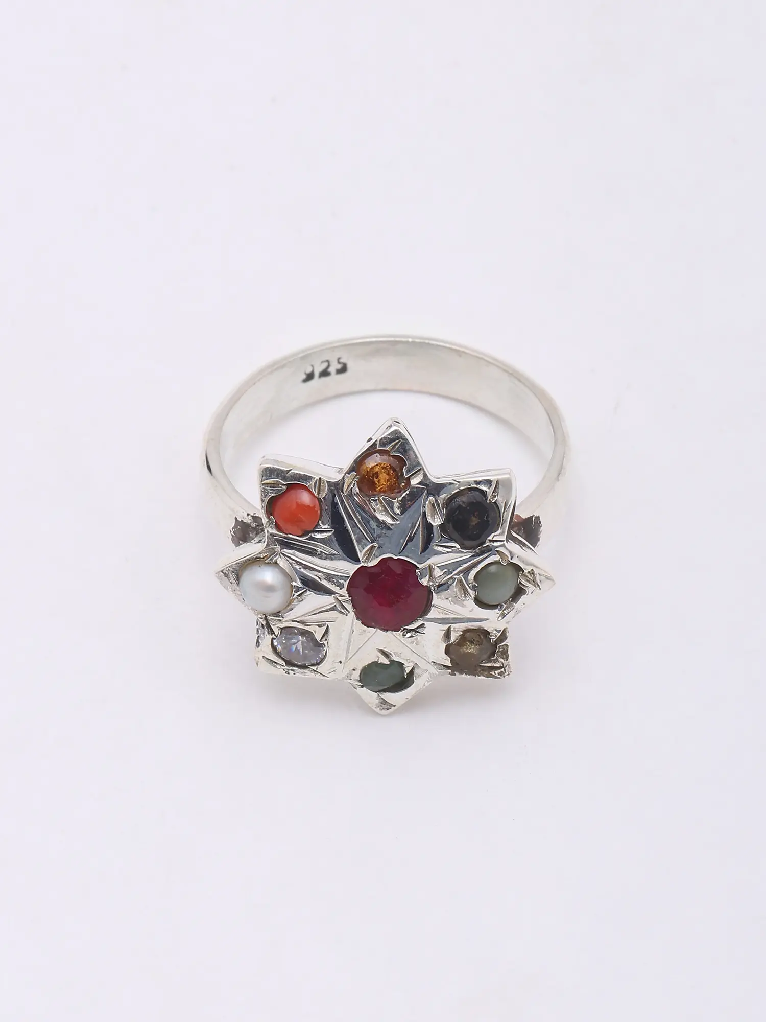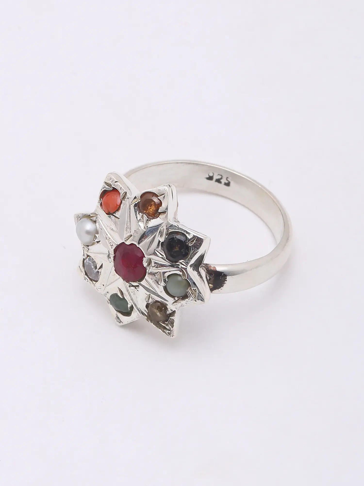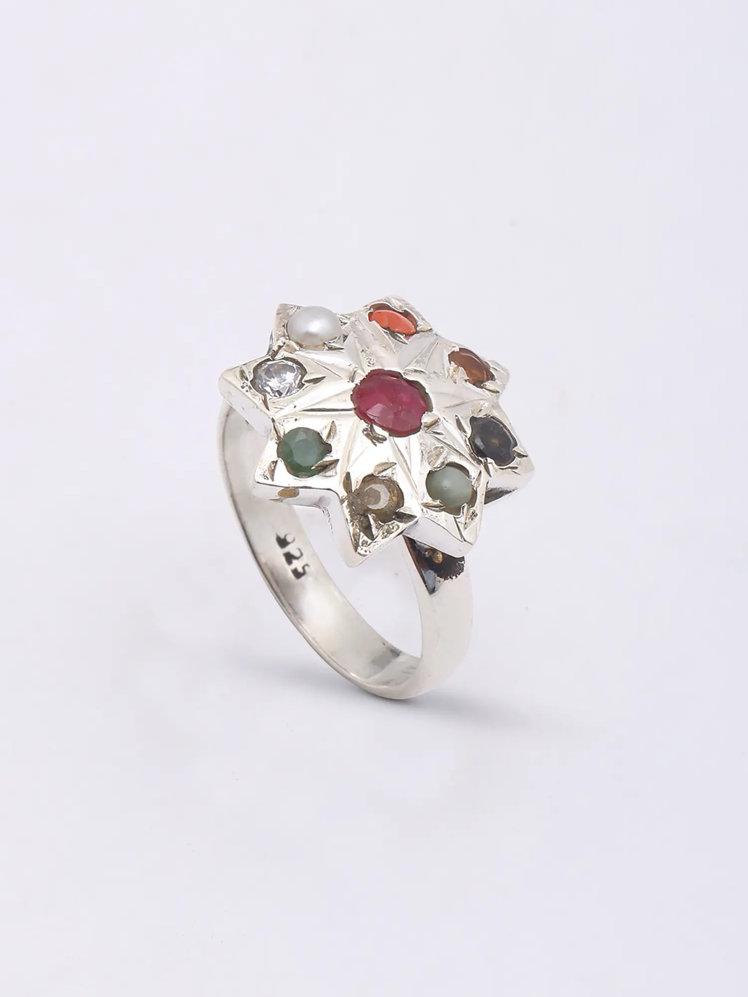 Kite Shape Sterling Silver Navaratna Necklace