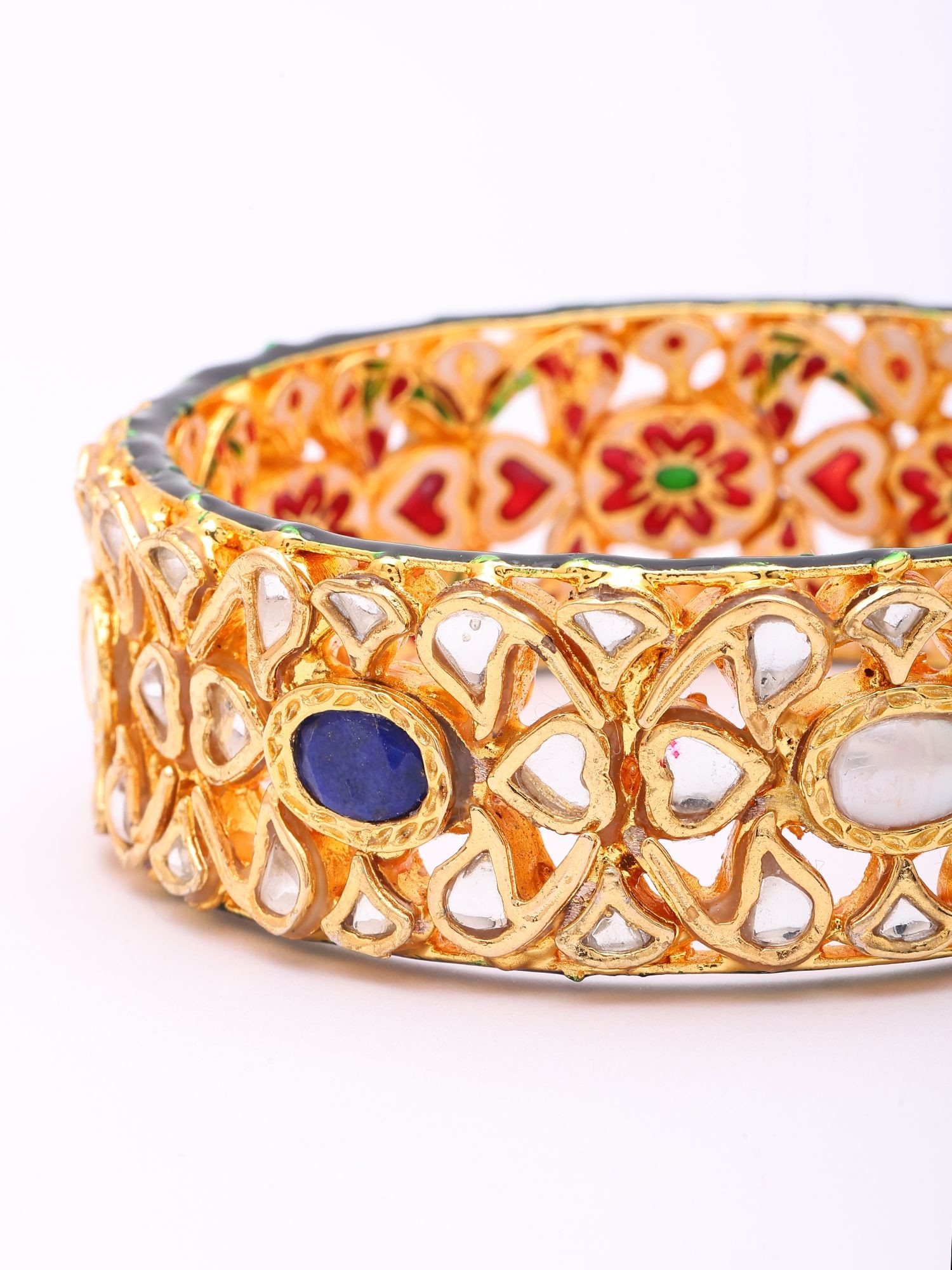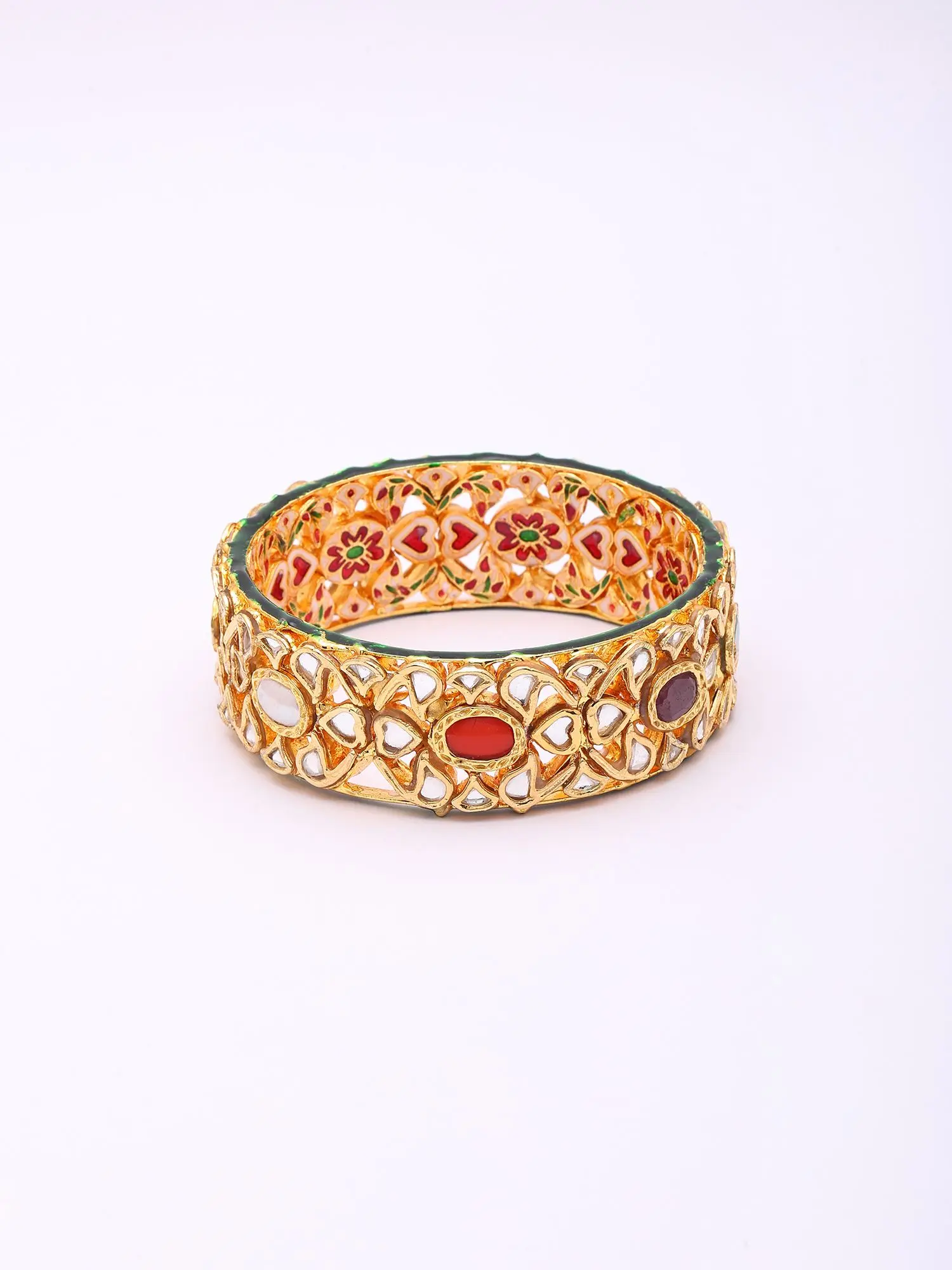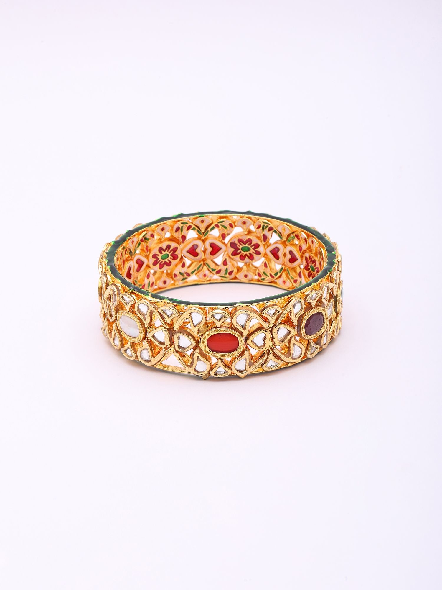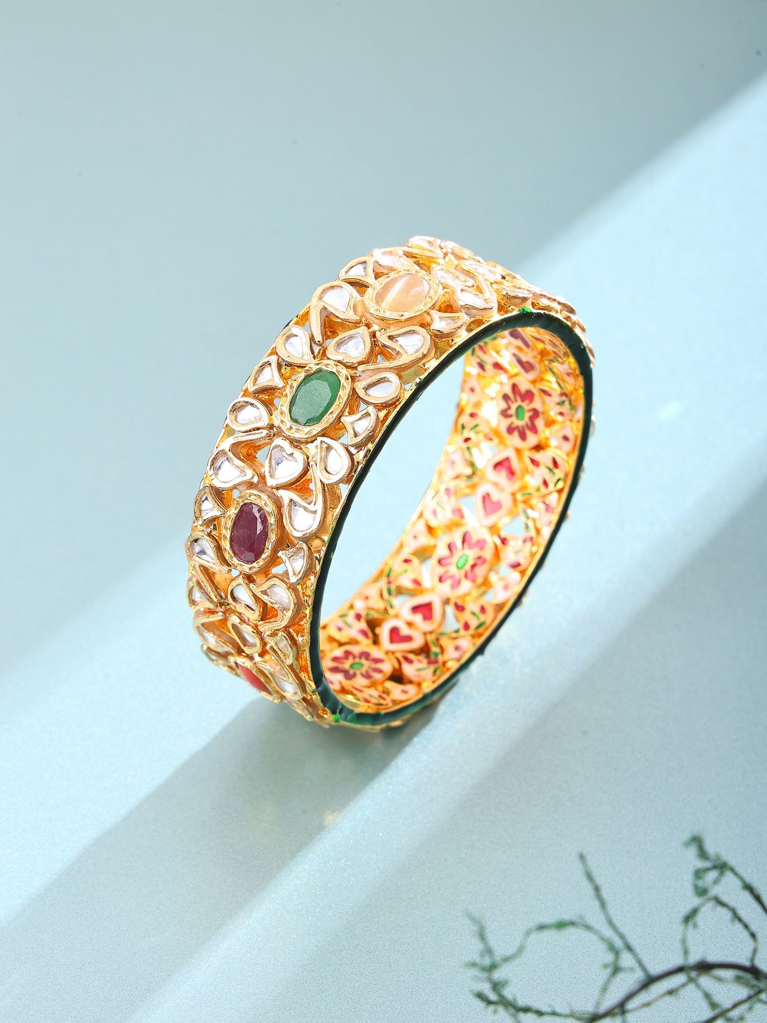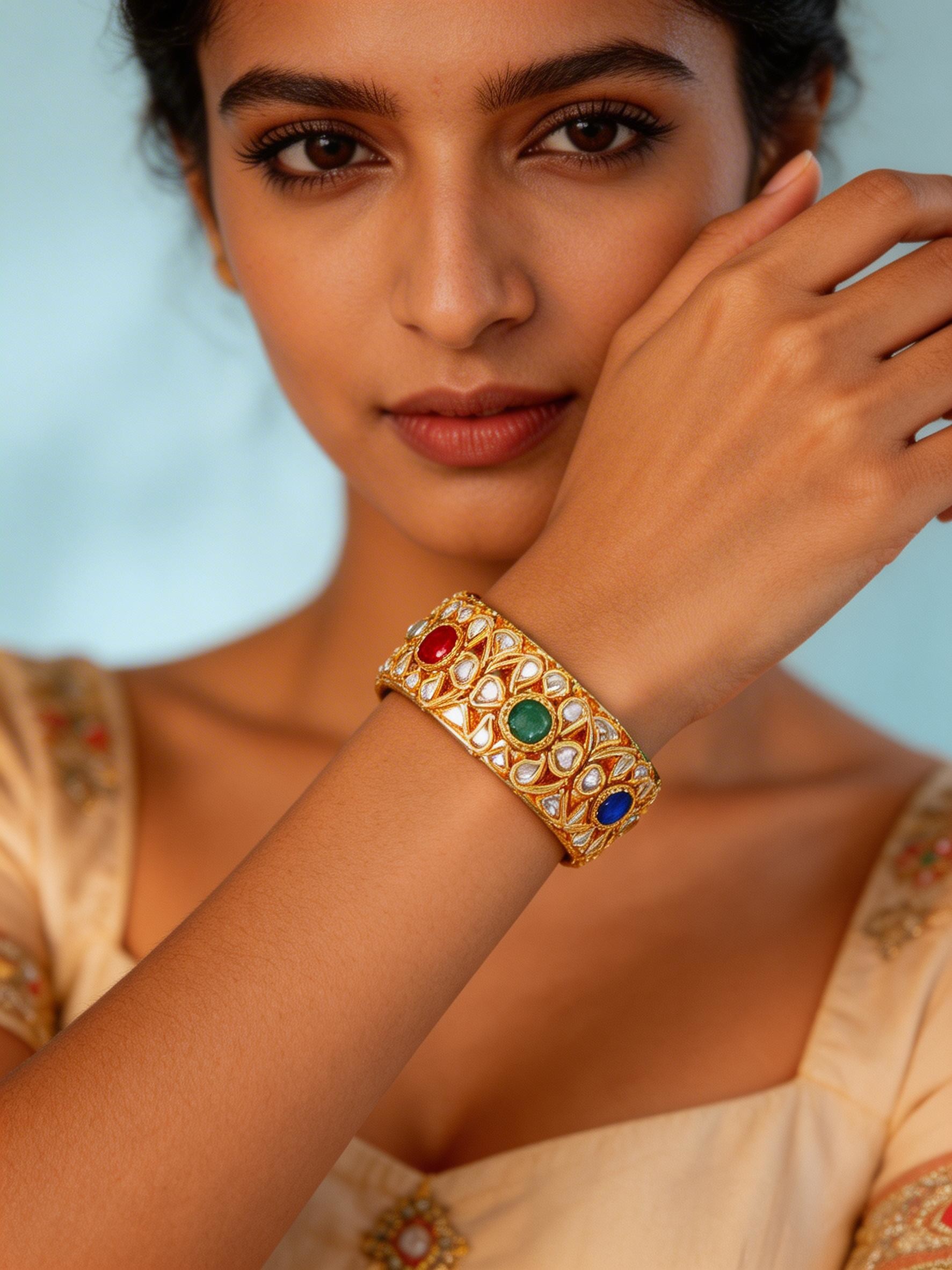 This magnificent bangle is the perfect accompaniment for celebrations, weddings, festivals, and any occasion where you wish to emanate grace and sophistication. Pair it with traditional Indian attire for a truly regal look, or let it be the statement piece that elevates a modern ensemble. It’s designed to be a focal point, adding a touch of unparalleled glamour to your personal style and a radiant glow to your presence.