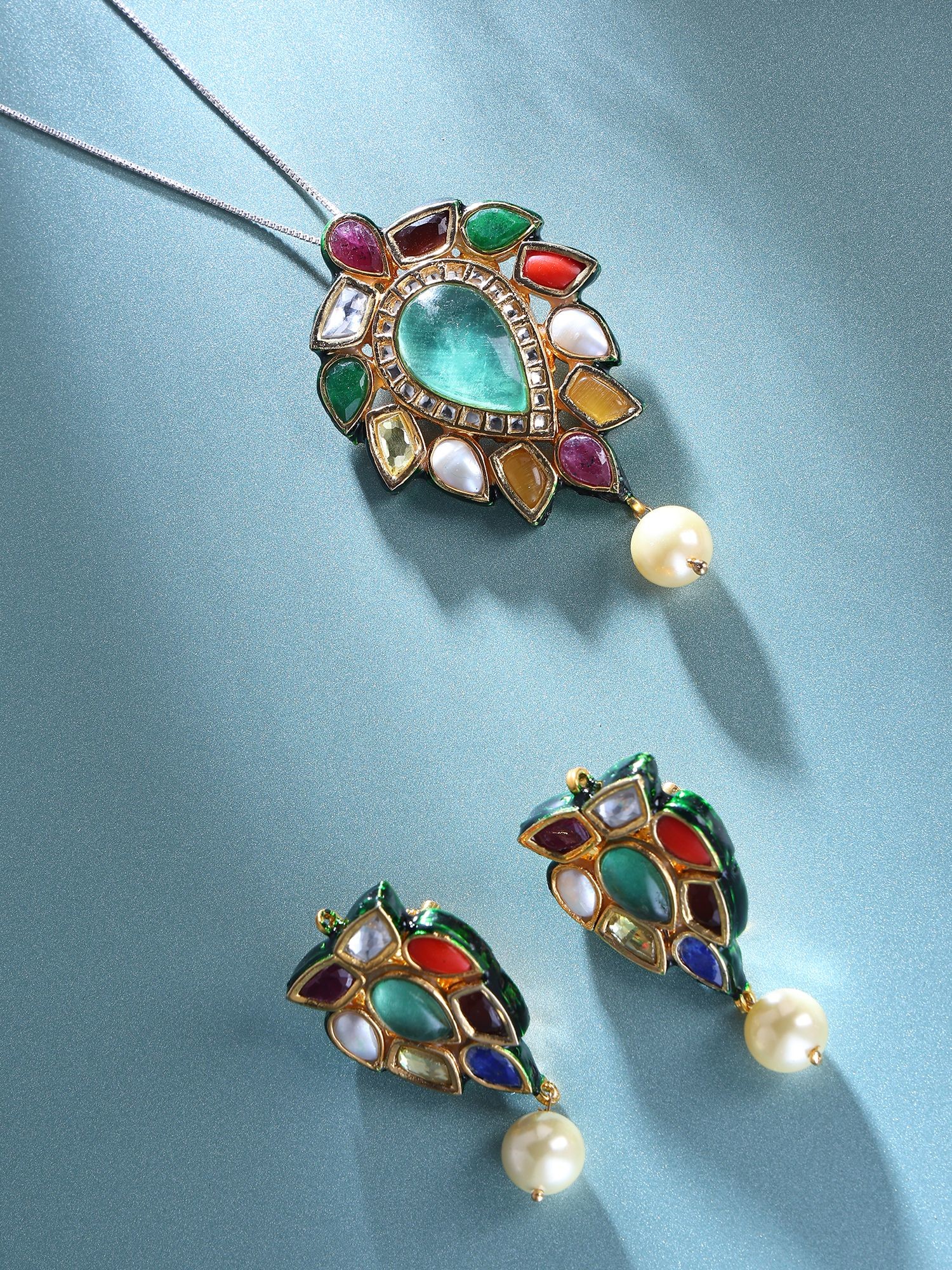 A timeless jewelry set rooted in Navratna tradition, perfect for special occasions and elevating everyday style.