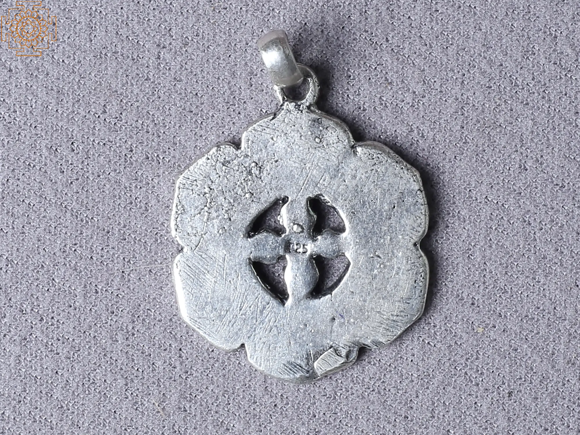 The Ohm Viswa Vajra Silver Pendant combines the most refined expressions of spirituality and craftsmanship. The pendant is made with the sacred mantra of Ohm Mane Padme Hum etched on the surface. The mantras are secured inside lotus petals, considered to be symbols of wisdom. The design also includes the Viswa Vajra, a symbol of indestructiveness and toughness. The pendant, constructed with great patience and care, succeeds in the excellent combination of beauty and spirit. Yet its simplicity and universality give it significance also as an accessory for everyday use or special occasions. The Ohm Viswa Vajra Silver Pendant represents the epitome of spirituality and high aesthetics.