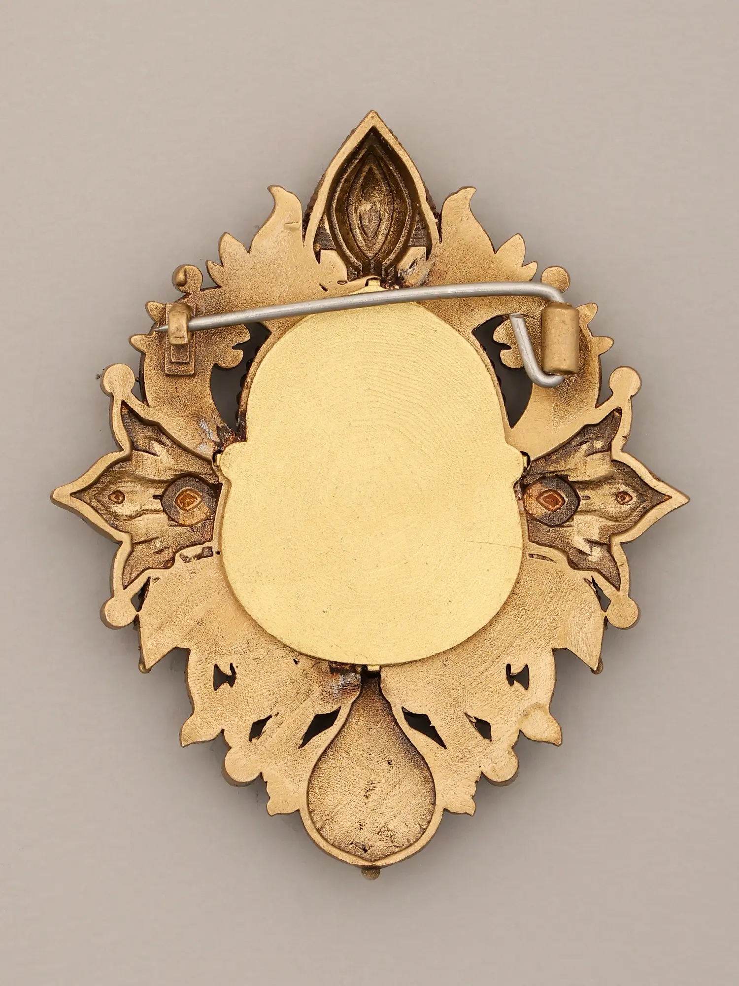 Crafted from durable brass, this brooch is designed to last for years to come. Brass is known for its strength, resistance to corrosion, and beautiful golden hue. The polished finish adds a touch of elegance, while the intricate details showcase the beauty of the metal. Over time, brass develops a natural patina, adding to its character and charm. This brooch is a timeless piece that you'll treasure for years to come.