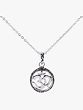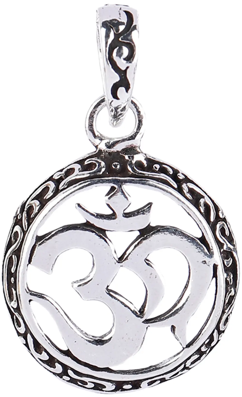 The pendant showcases the universally recognized Om symbol, rendered in a delicate openwork design that allows light to play through, highlighting its serene contours. The surrounding circular frame is not merely a border, but a work of art in itself, featuring subtle, traditional etchings that hint at the rich cultural heritage from which this piece originates. Each detail has been thoughtfully considered, from the decorative bail that suspends the pendant to the smooth, polished finish of the sterling silver, ensuring a piece that is both visually captivating and a pleasure to wear. ––––––––––––––––––––