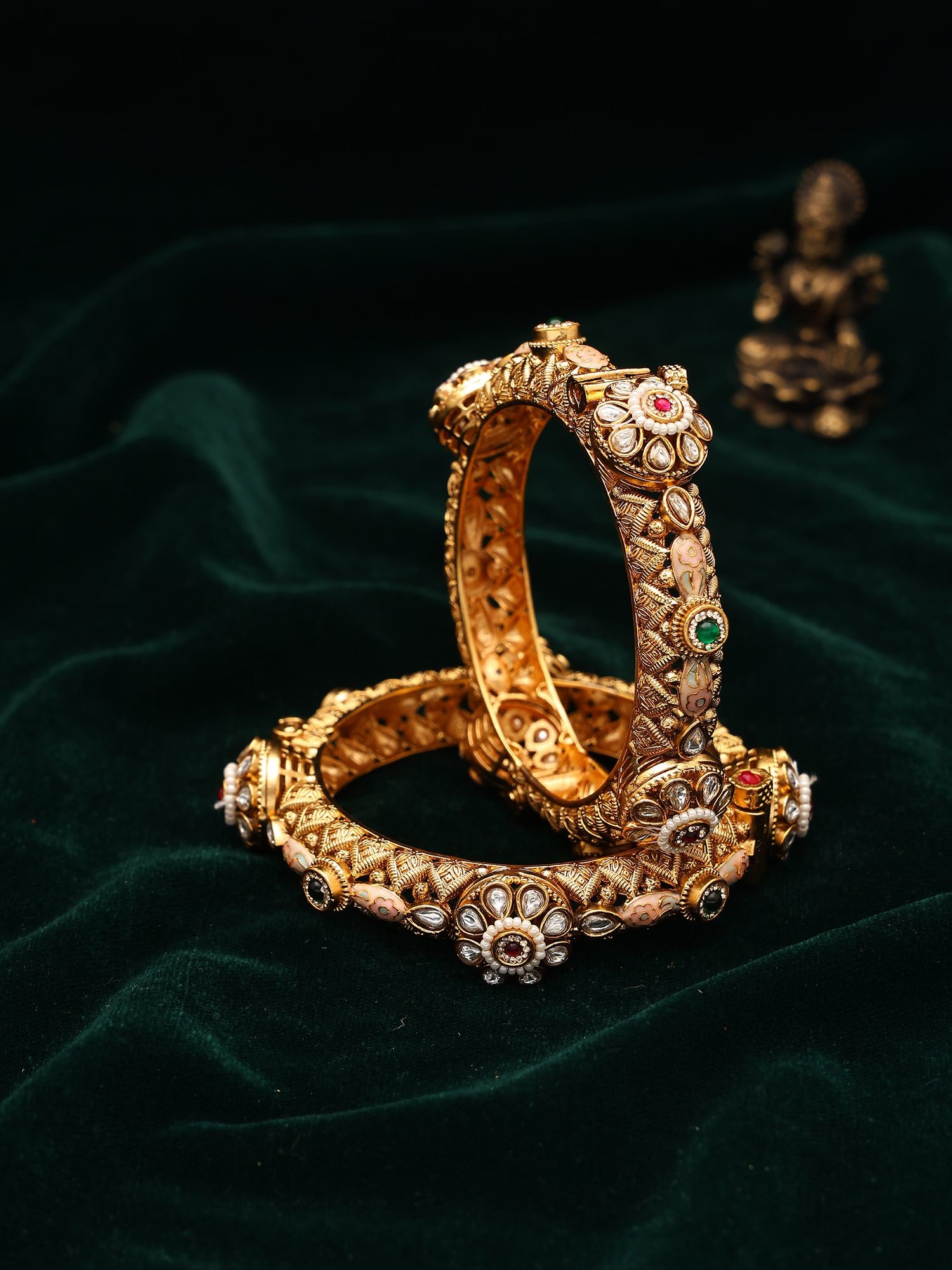 Traditional Openable Floral Kada Bangle Set