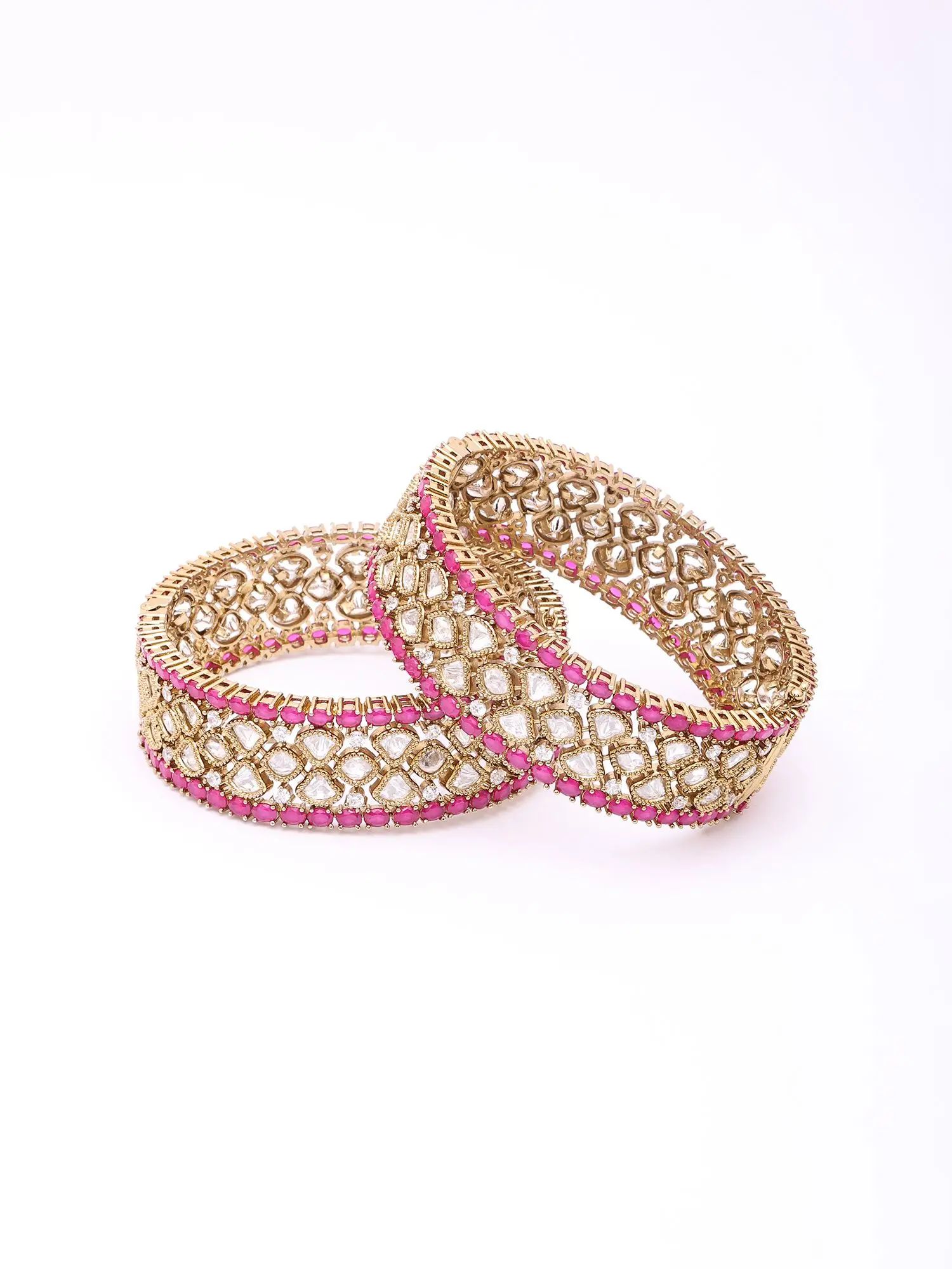 Blush Pink Stone Studded Openable Bangles with Polki Detailing (Pair)