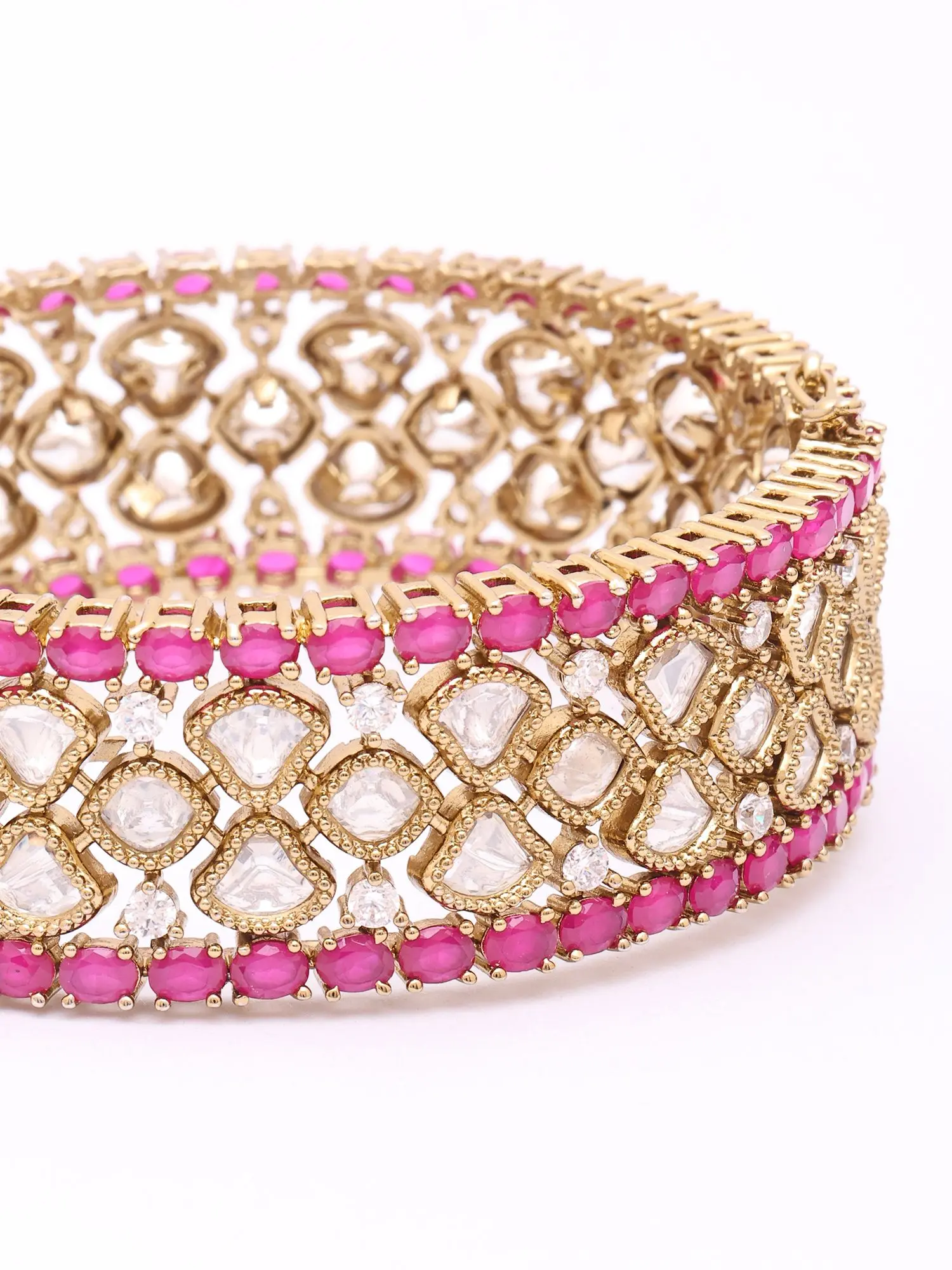 Pink Gemstone Openable Bangles with American Diamond Accents (Pair)
