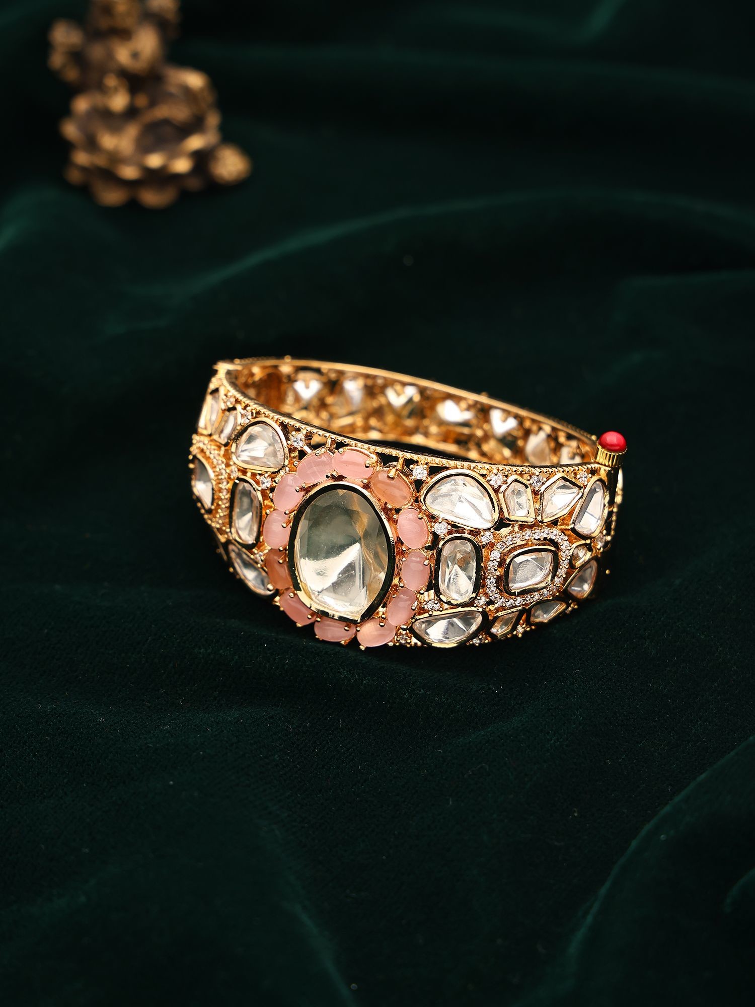 Stone Studded Kundan Openable Kada Bangle with Polki Detailing