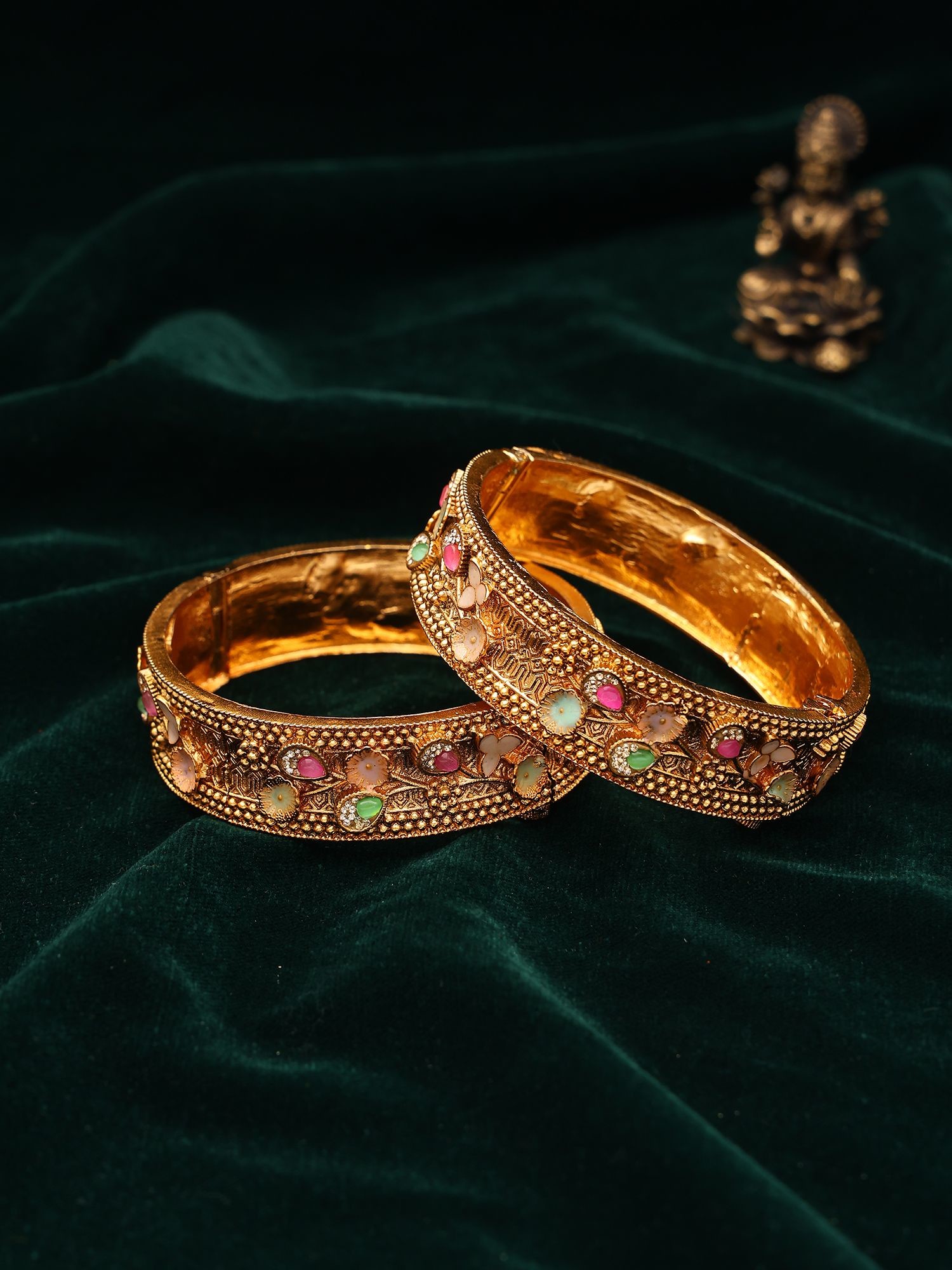 Exquisite pair of openable kada bangles with a traditional Meenakari style.