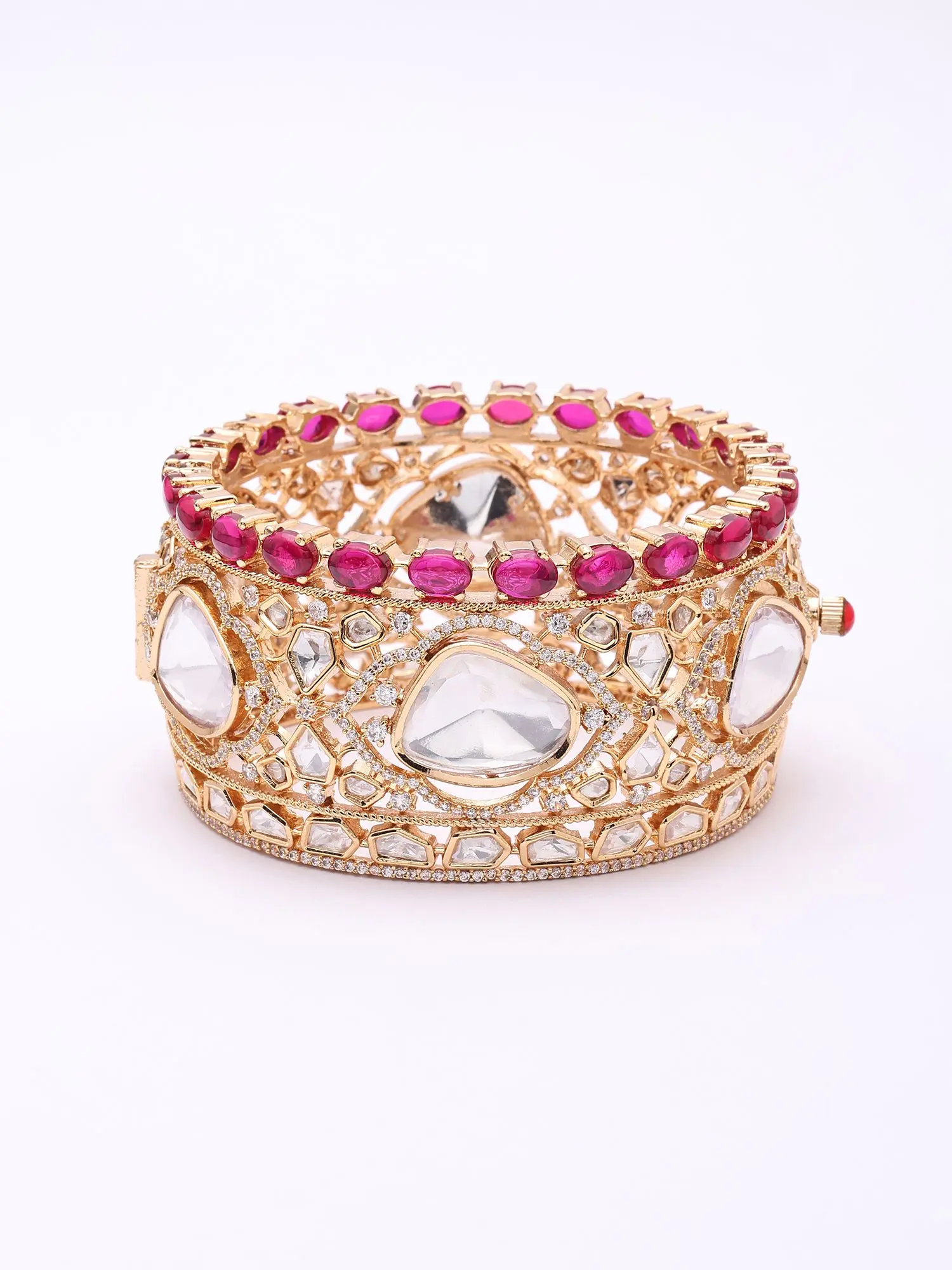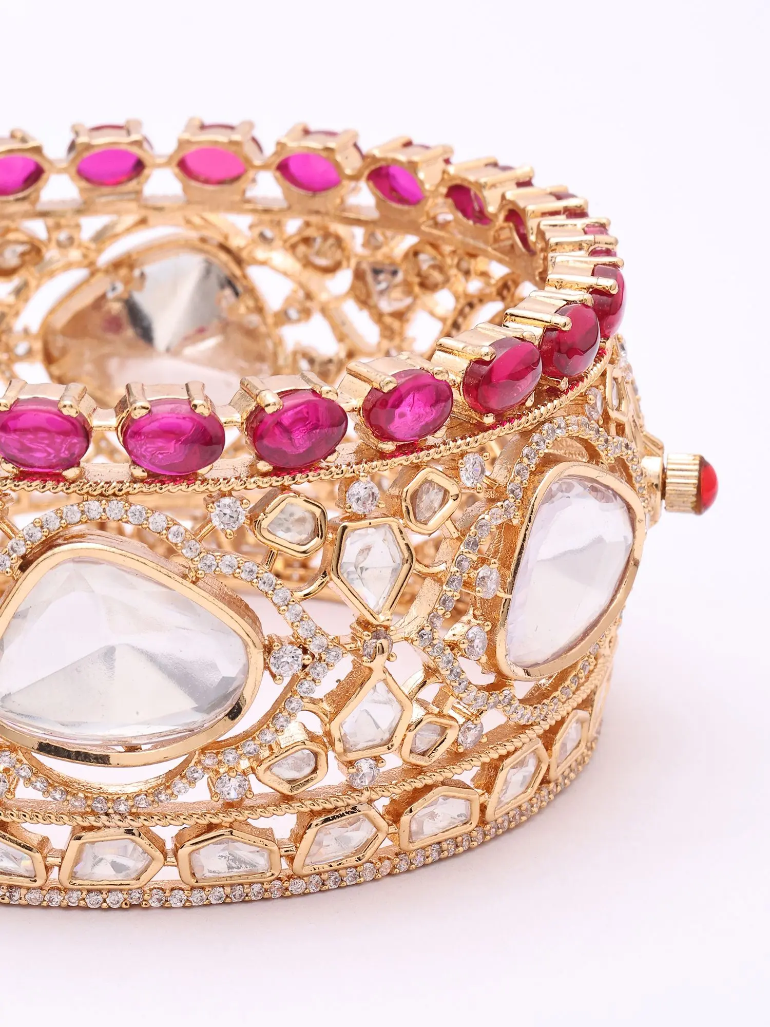 Designer Kada Bangles: Polki Style with Pink Stones