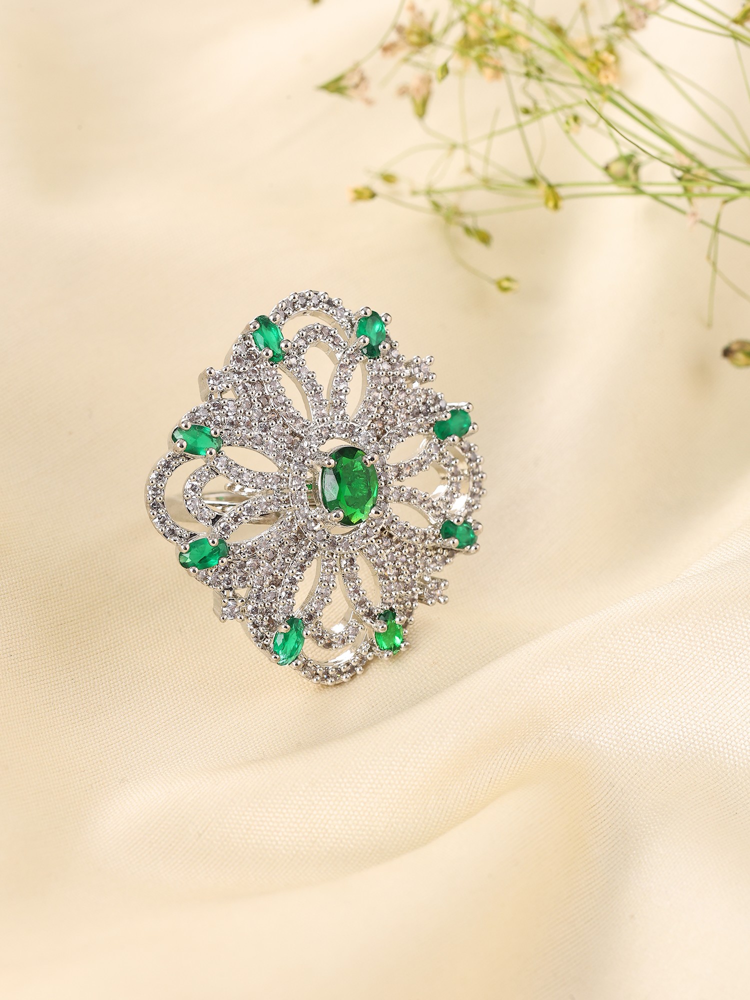 Multi Floral Cluster Adjustable American-Diamond Cocktail Ring
