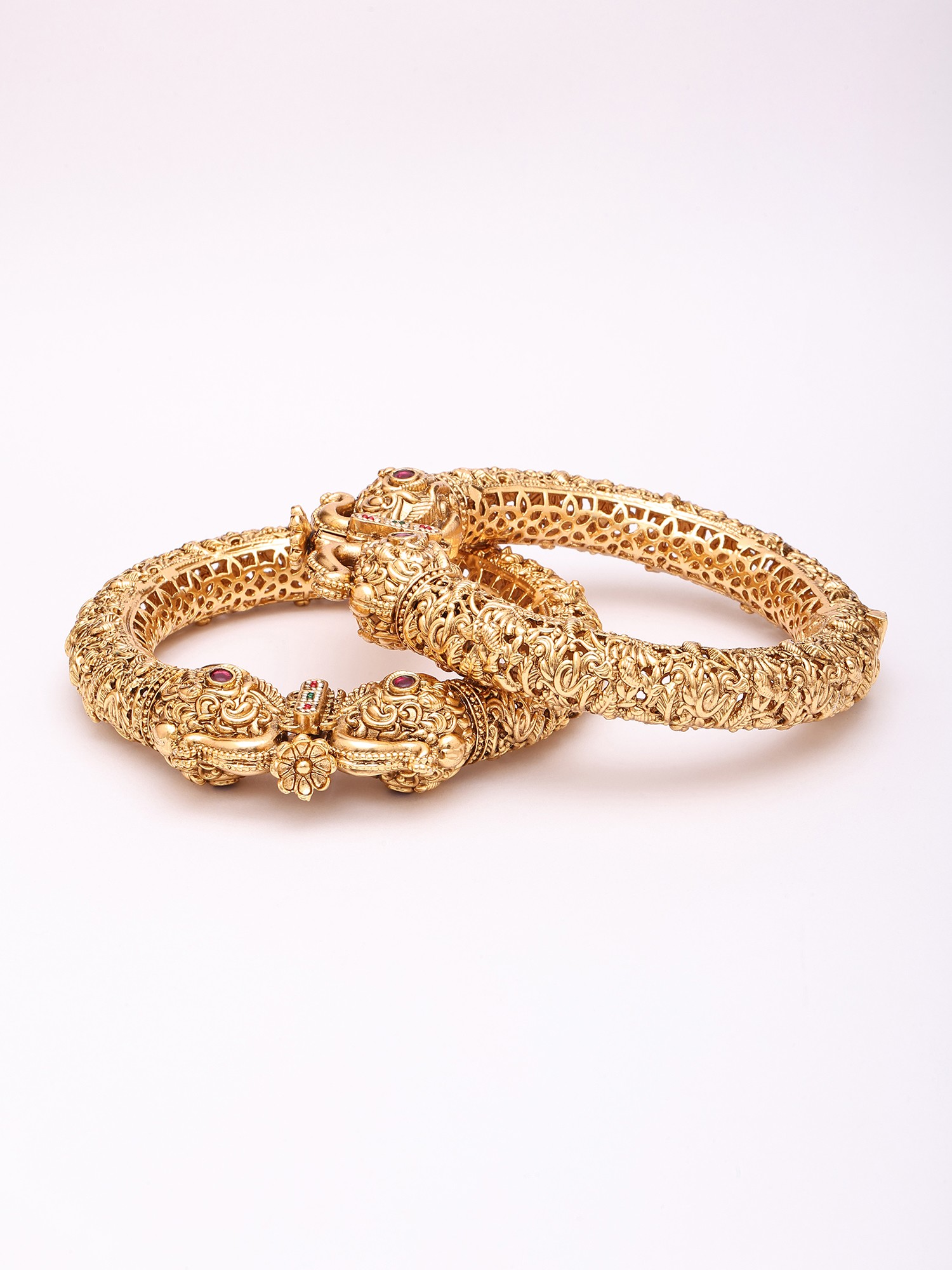 Gold-Tone Brass Bangles with Elephant and Peacock Motifs