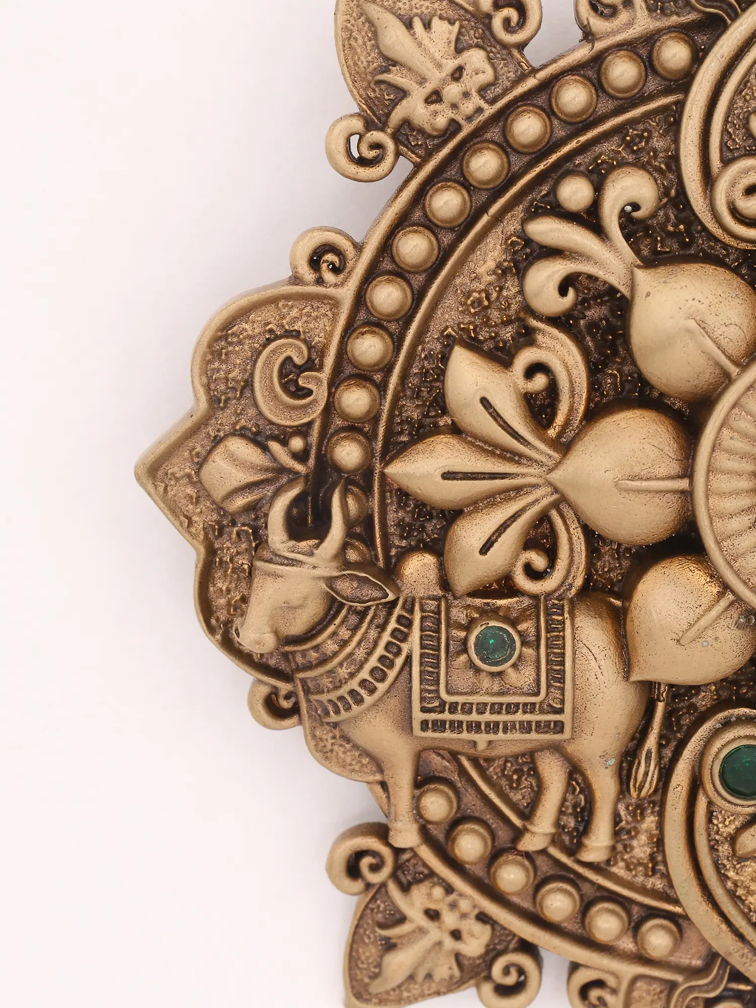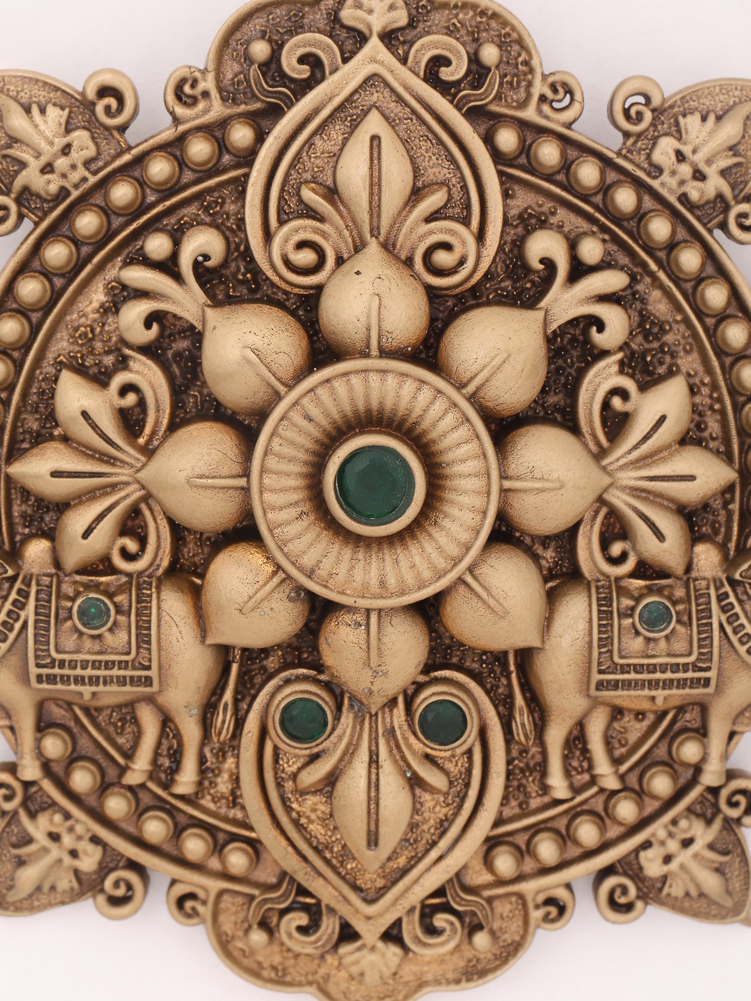 Every curve and contour of this exquisite piece has been thoughtfully rendered, showcasing the skill and dedication of the artisans who brought it to life. The metalwork displays a symphony of textured surfaces and raised elements, creating a depth and dimensionality that draws the eye. Note the repeating floral motifs, the precise placement of embellishments, and the overall harmonious balance of the design – all elements that contribute to its exceptional visual appeal. The addition of subtle accents adds visual interest and depth to the design, creating a sophisticated and refined aesthetic.