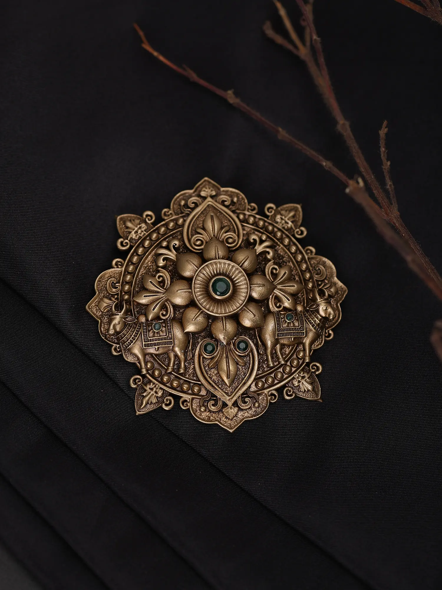 Stone Studded Rudraksha Royal Bow and Arrow Brooch