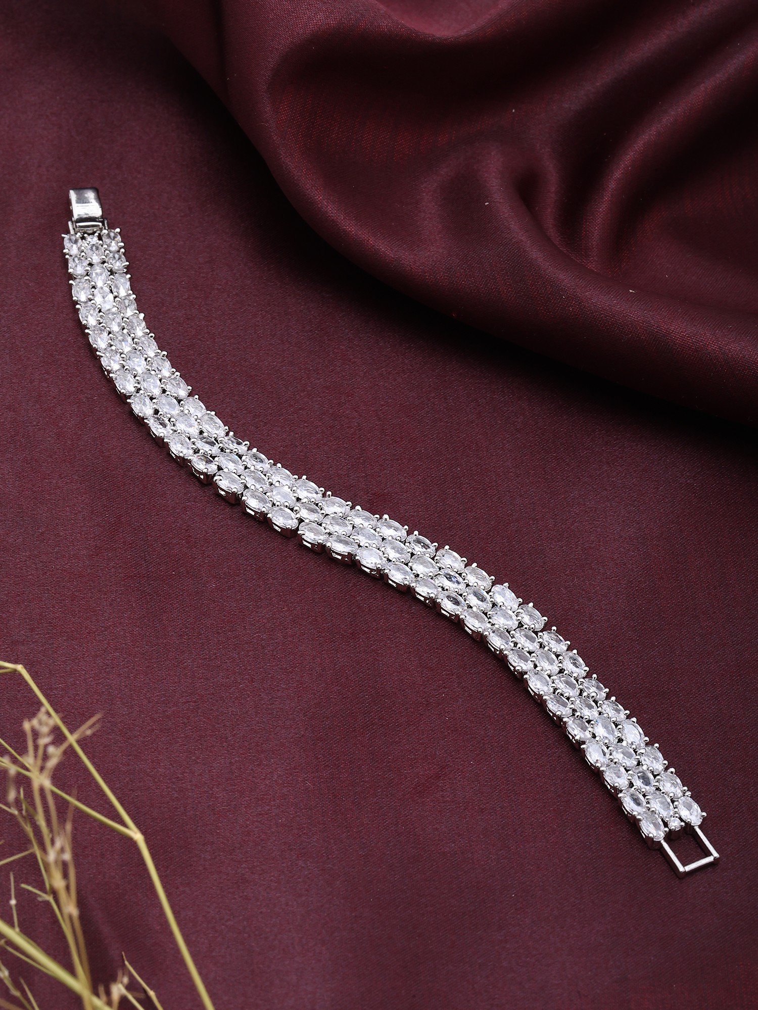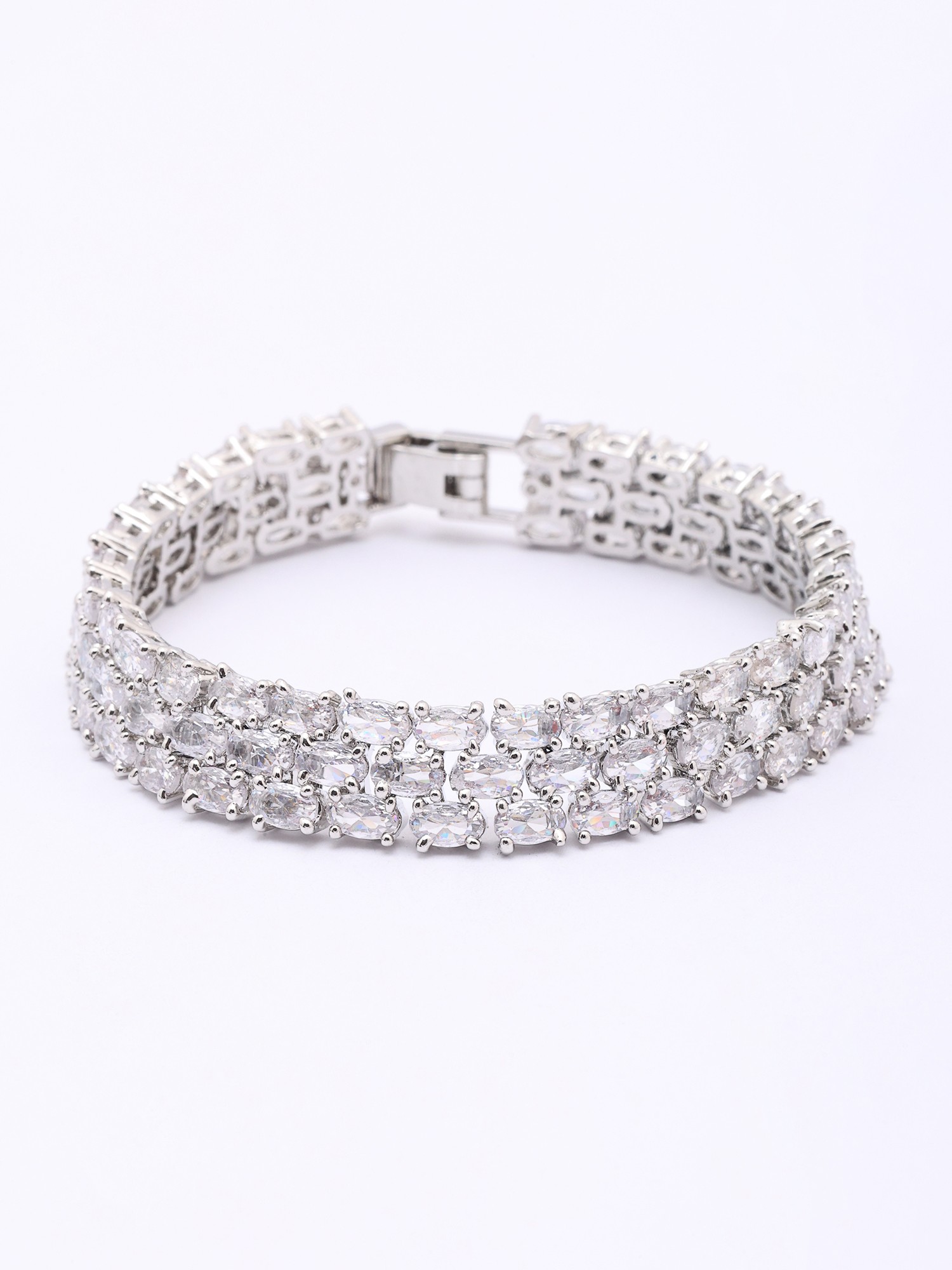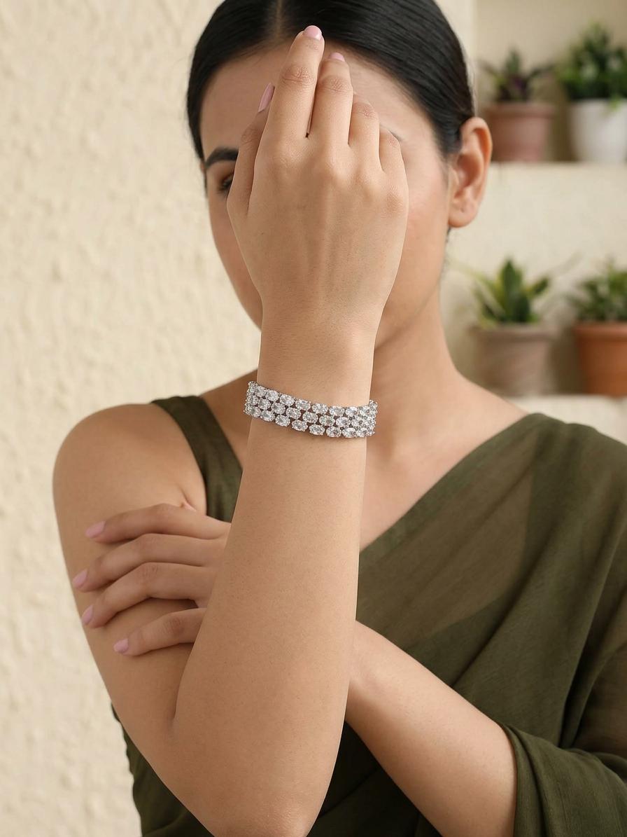 Crafted with meticulous attention to detail, this bracelet showcases the brilliance of American diamonds, each hand-set to perfection. The setting, designed for durability and luminescence, ensures that every facet catches and reflects light with unparalleled fire. You'll appreciate the seamless integration of each stone, creating a fluid and luxurious feel against your skin, a testament to the artisan's skill.