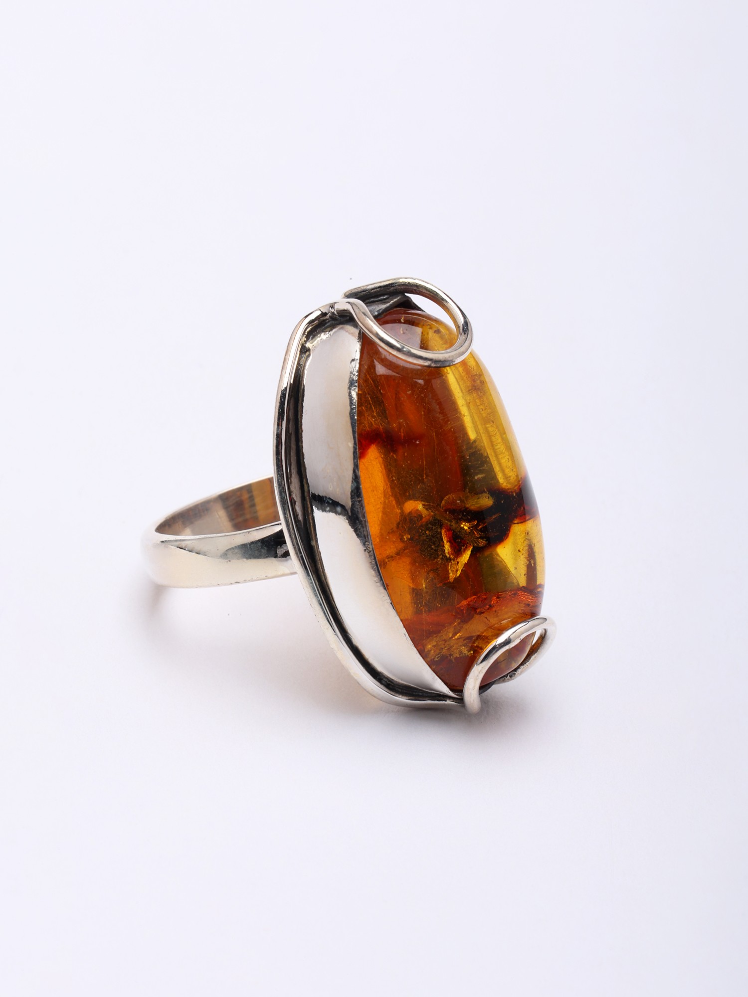 Amber is not just a beautiful gemstone; it's a window into the past. Formed from fossilized tree resin over millions of years, amber often contains preserved plant matter and even insects, offering a fascinating glimpse into ancient ecosystems. Each piece of amber is unique, bearing its own distinctive patterns, colors, and inclusions. When you wear this ring, you're wearing a piece of natural history. Embrace the warmth and radiance of amber, and let its timeless beauty become a part of your personal style.