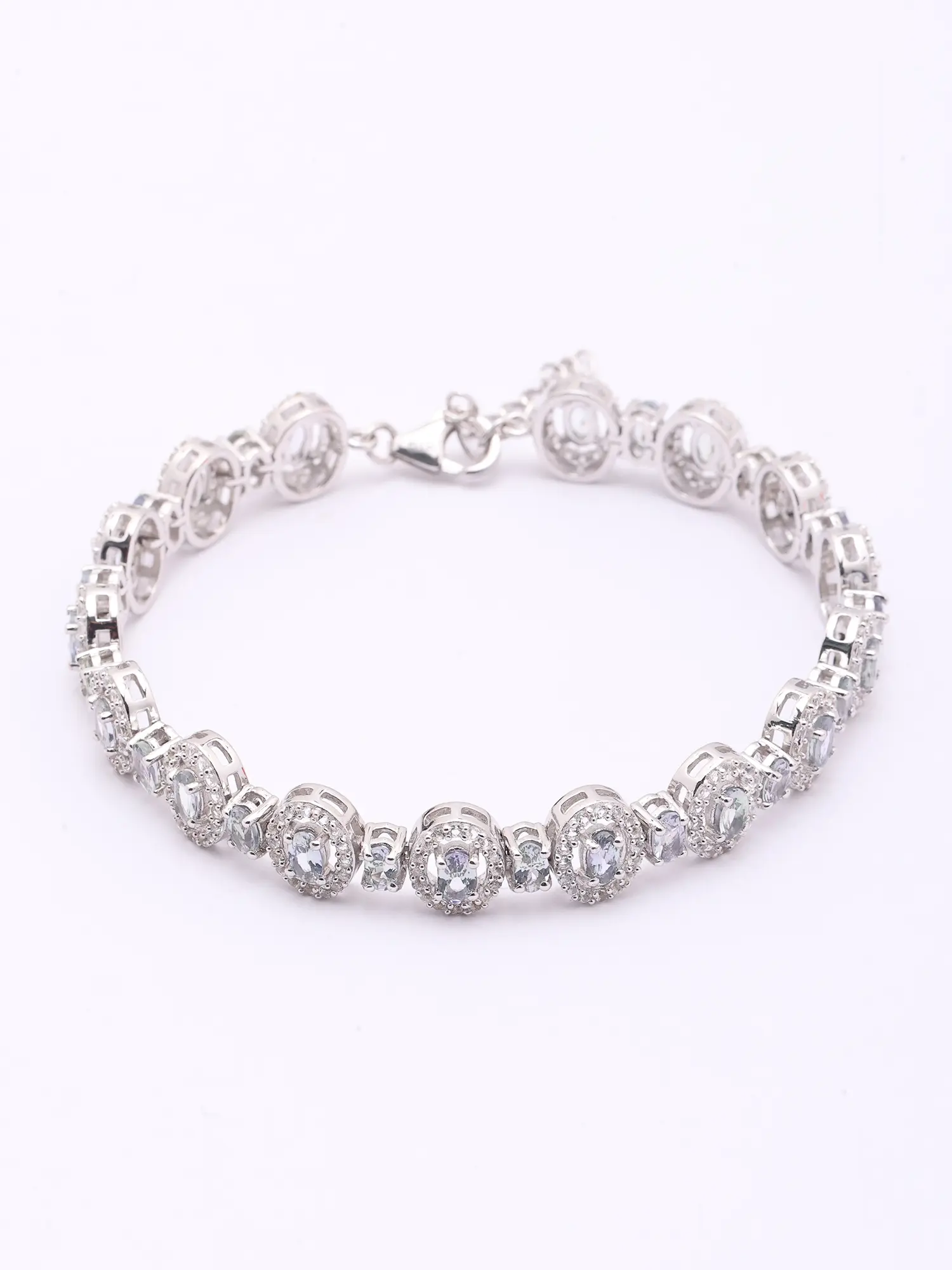 Faceted Aquamarine Stone Studded Sterling Silver Necklace