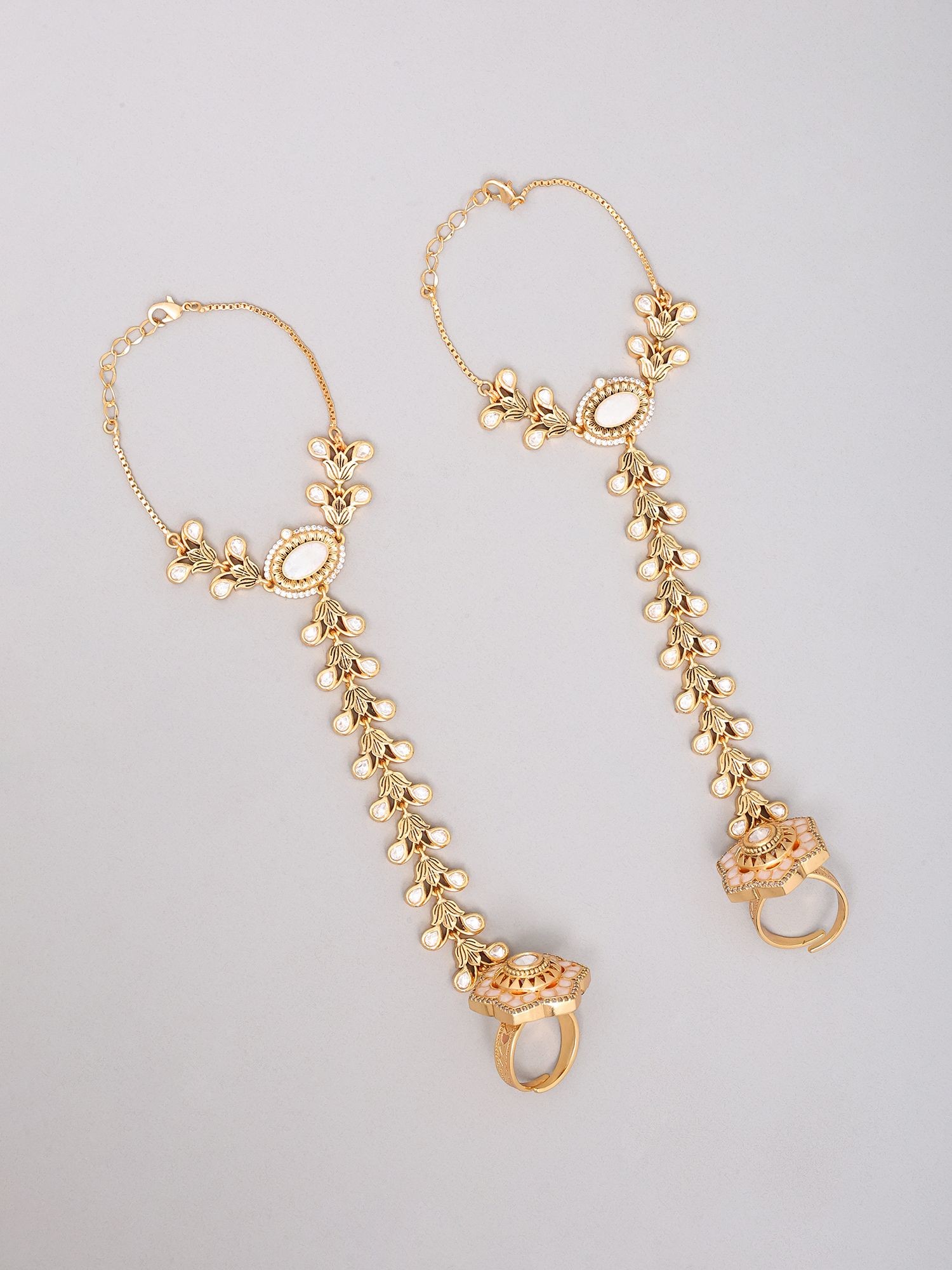 Comes with matching hathphool (hand ornaments) for a cohesive and glamorous appearance.