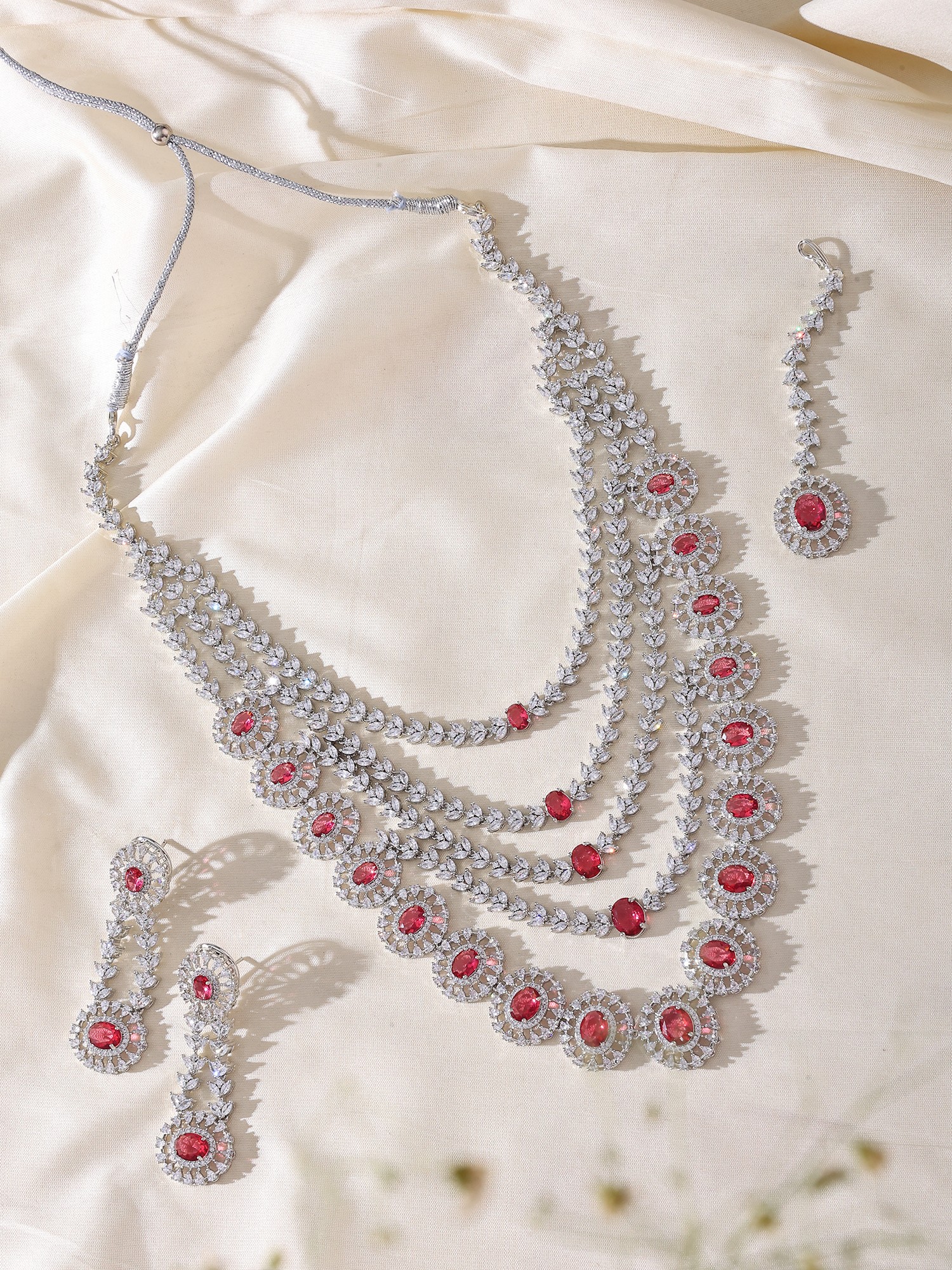 Floral Design Multi Strand American-Diamond Bridal Necklace Set