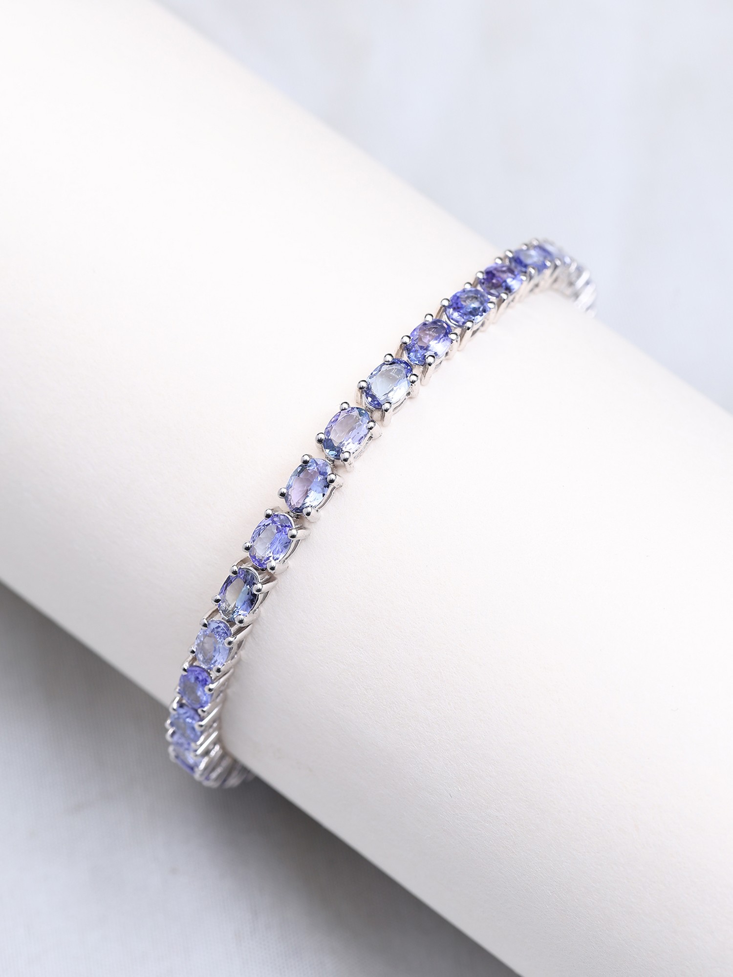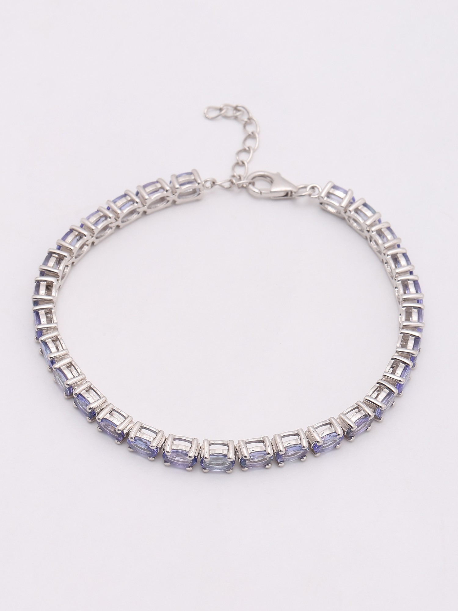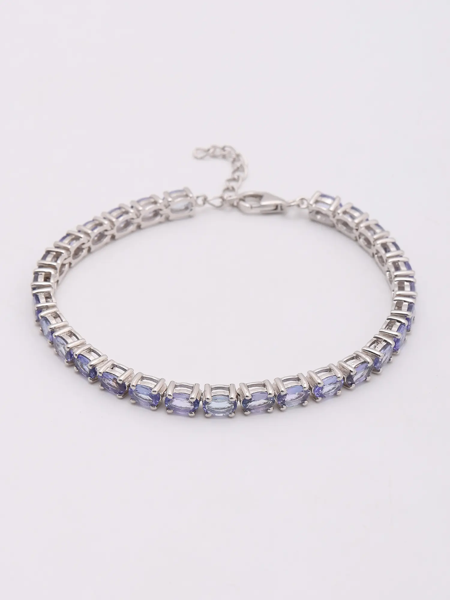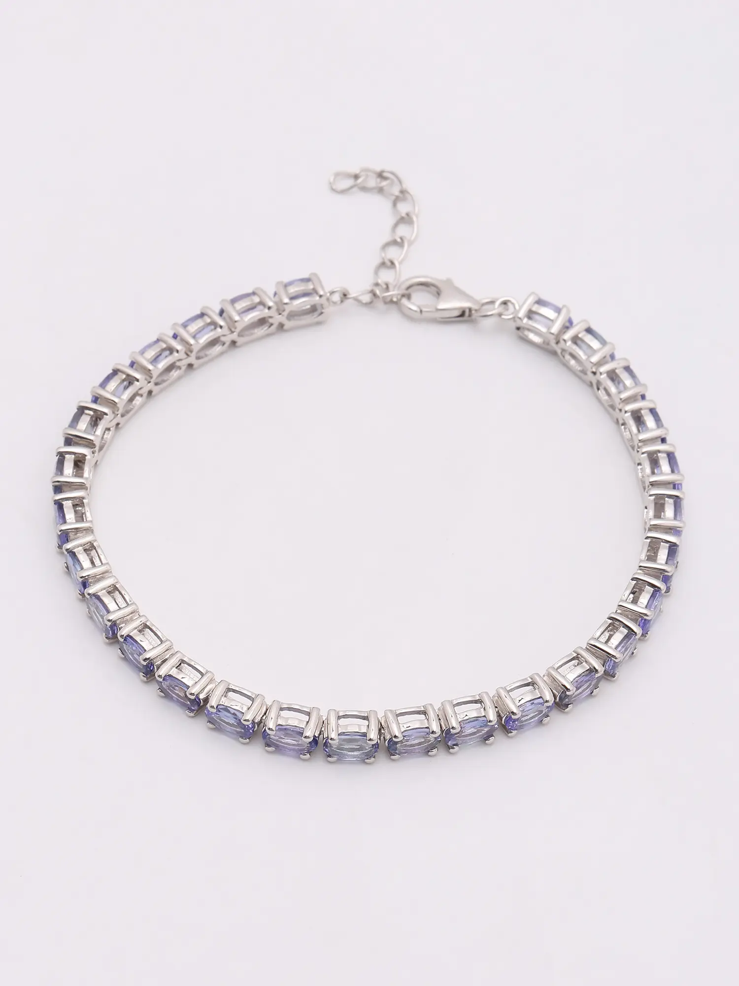Pear Shape Faceted Blue Sapphire Bracelet with Cubic Zirconia