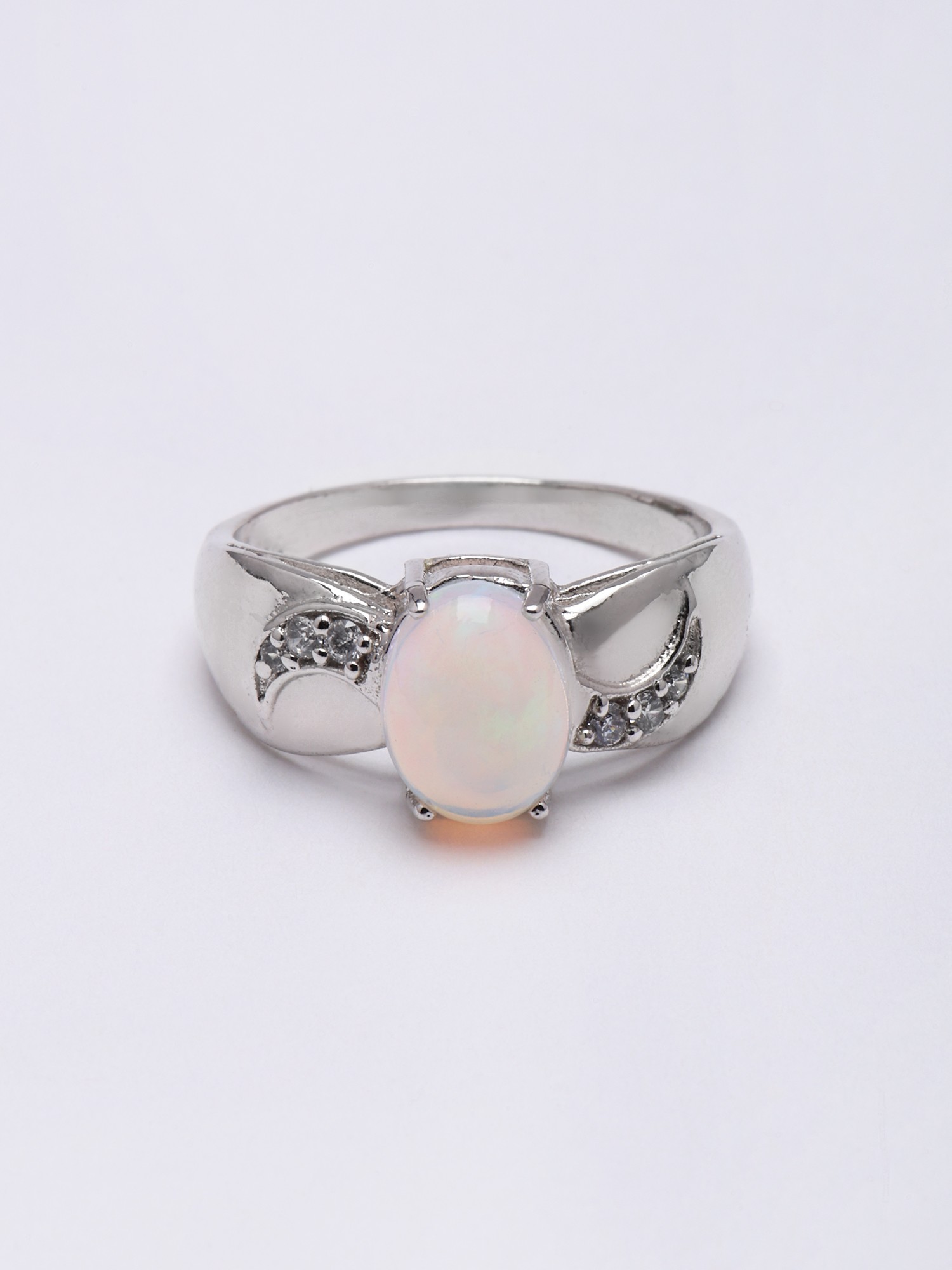 Sterling Silver Ring with Oval Shape White Opal and Amethyst