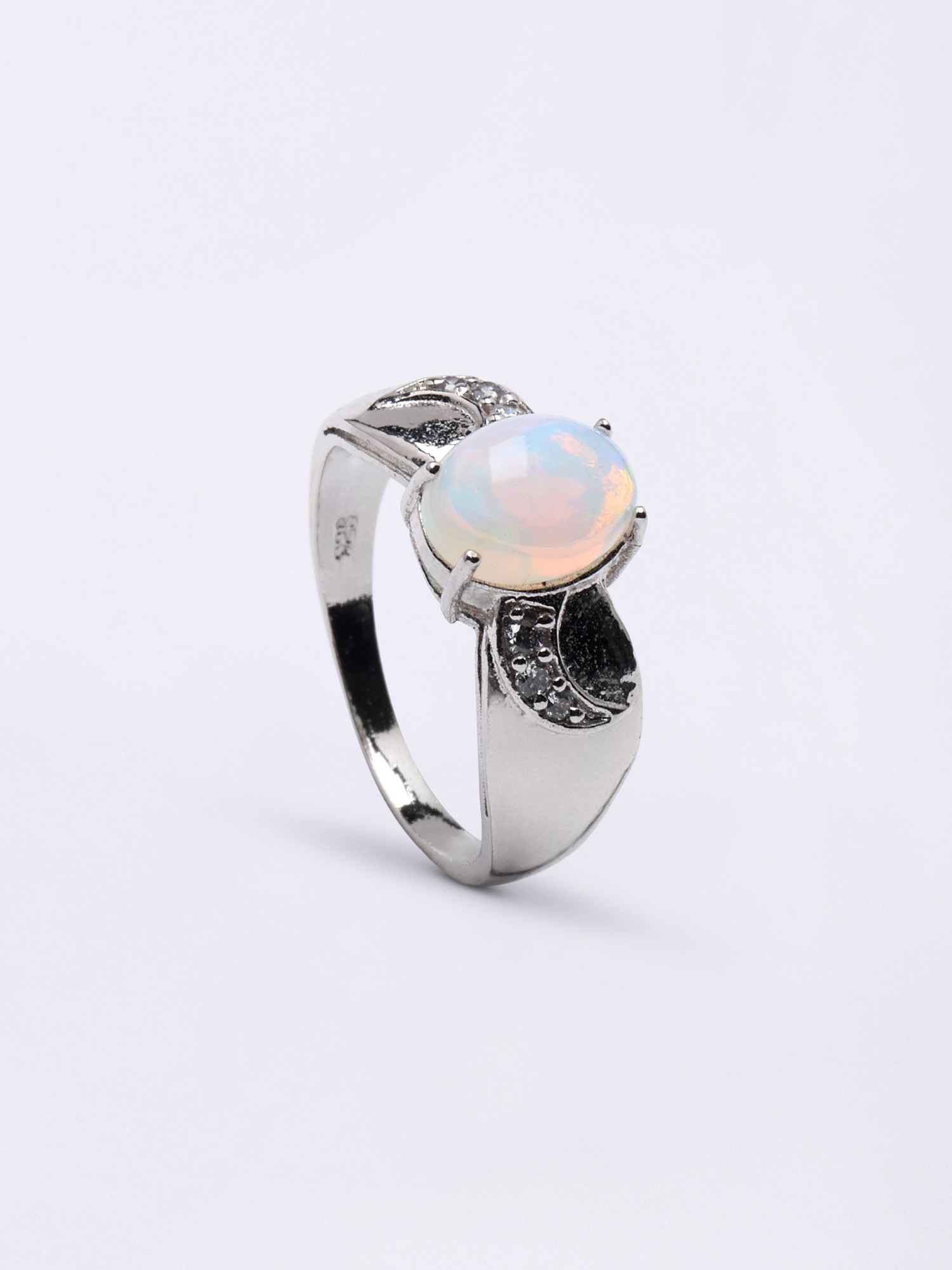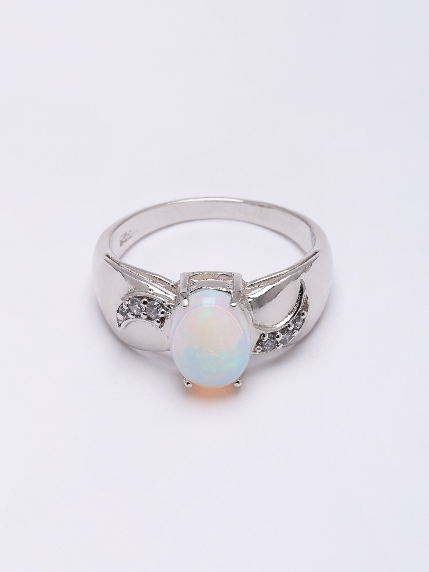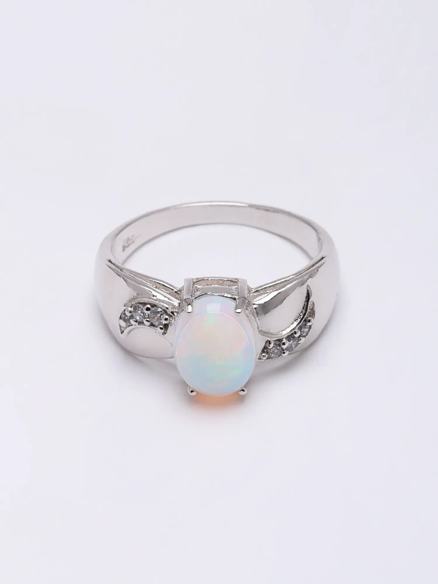 Sterling Silver Ring with Oval Cut Ethiopian Opal