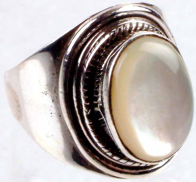 Elevate your jewelry collection with this distinctive ring. Its focal point is a smooth, oval shell, lending a subtle and sophisticated glow. The neutral tone of the shell ensures it will complement a wide range of outfits, making it a versatile addition to your wardrobe. The ring's design strikes a balance between contemporary and classic, making it suitable for both casual and more formal occasions. Crafted with careful attention to detail, the ring features a robust construction that speaks to its durability. The detailed metalwork surrounding the shell adds depth and texture to the piece, creating a visually appealing contrast against the smooth, polished surface of the shell. Its design is bold enough to make a statement, yet refined enough to remain elegant and understated.