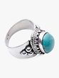 This ring is designed to capture attention without overpowering your personal style. Its substantial presence makes it a perfect focal point for any outfit, whether you're dressing up for a special occasion or adding a touch of bohemian chic to your everyday wear. The rich blue of the turquoise pairs beautifully with a range of colors, from earthy neutrals and denim blues to vibrant jewel tones. It’s an ideal gift for anyone who appreciates natural gemstones, artisanal jewelry, or the enduring allure of Southwestern-inspired design. Let this ring be a constant reminder of open skies, clear waters, and the beauty found in the natural world.