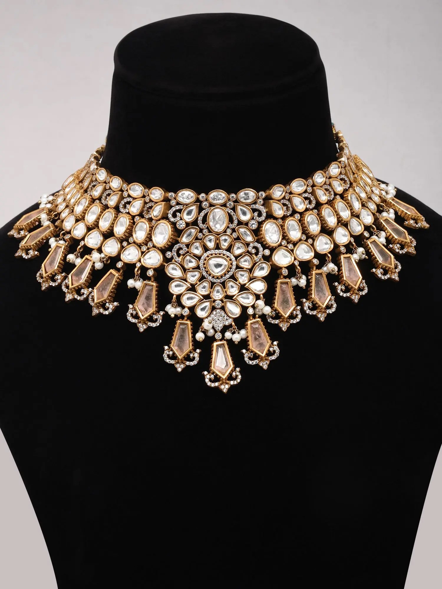 Pink Kundan Stone Studded Semi Bridal Necklace Set