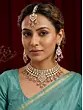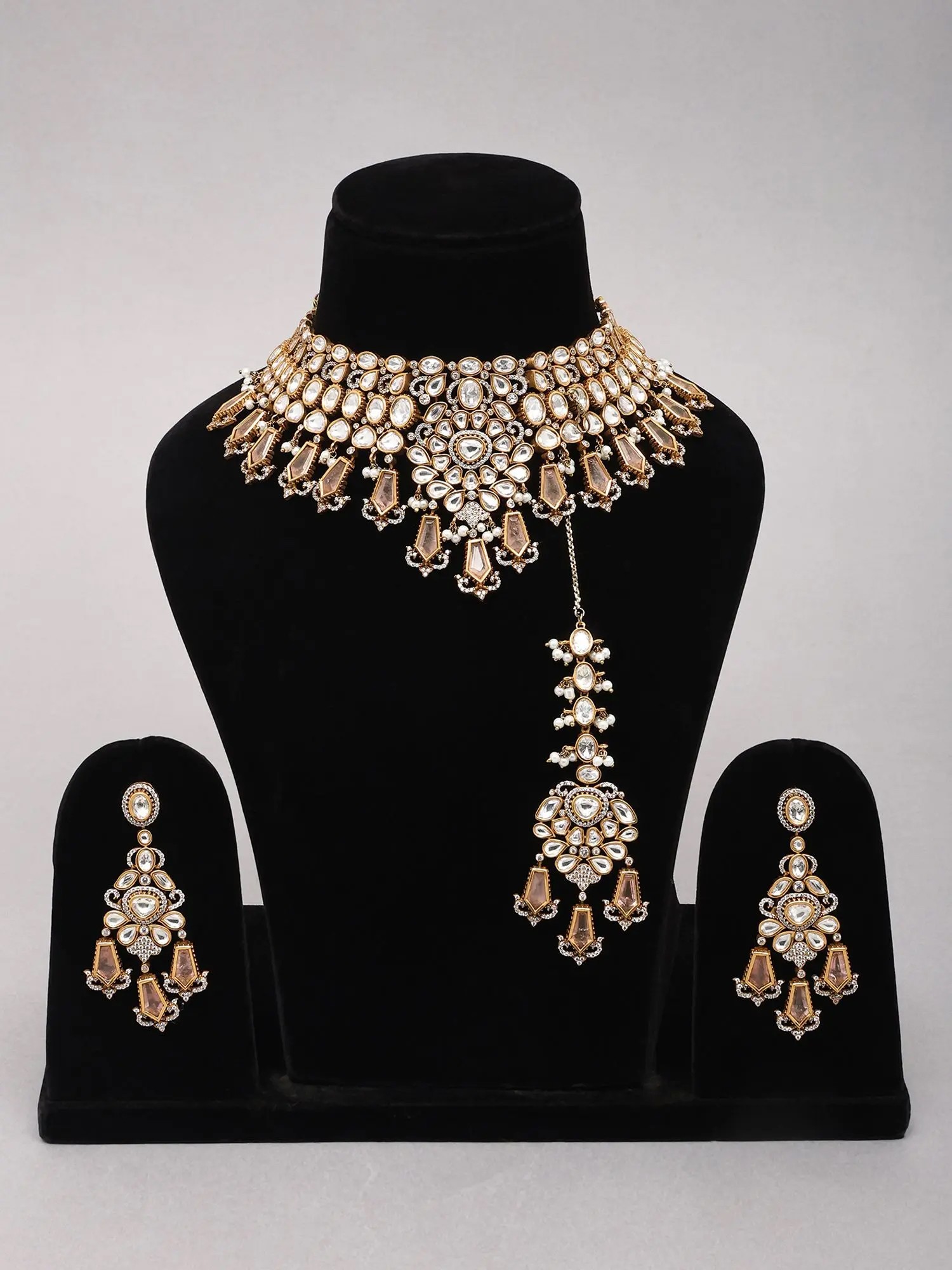 Teardrop Stone Studded Kundan Bridal Necklace Set with Earrings and Maang Tikka