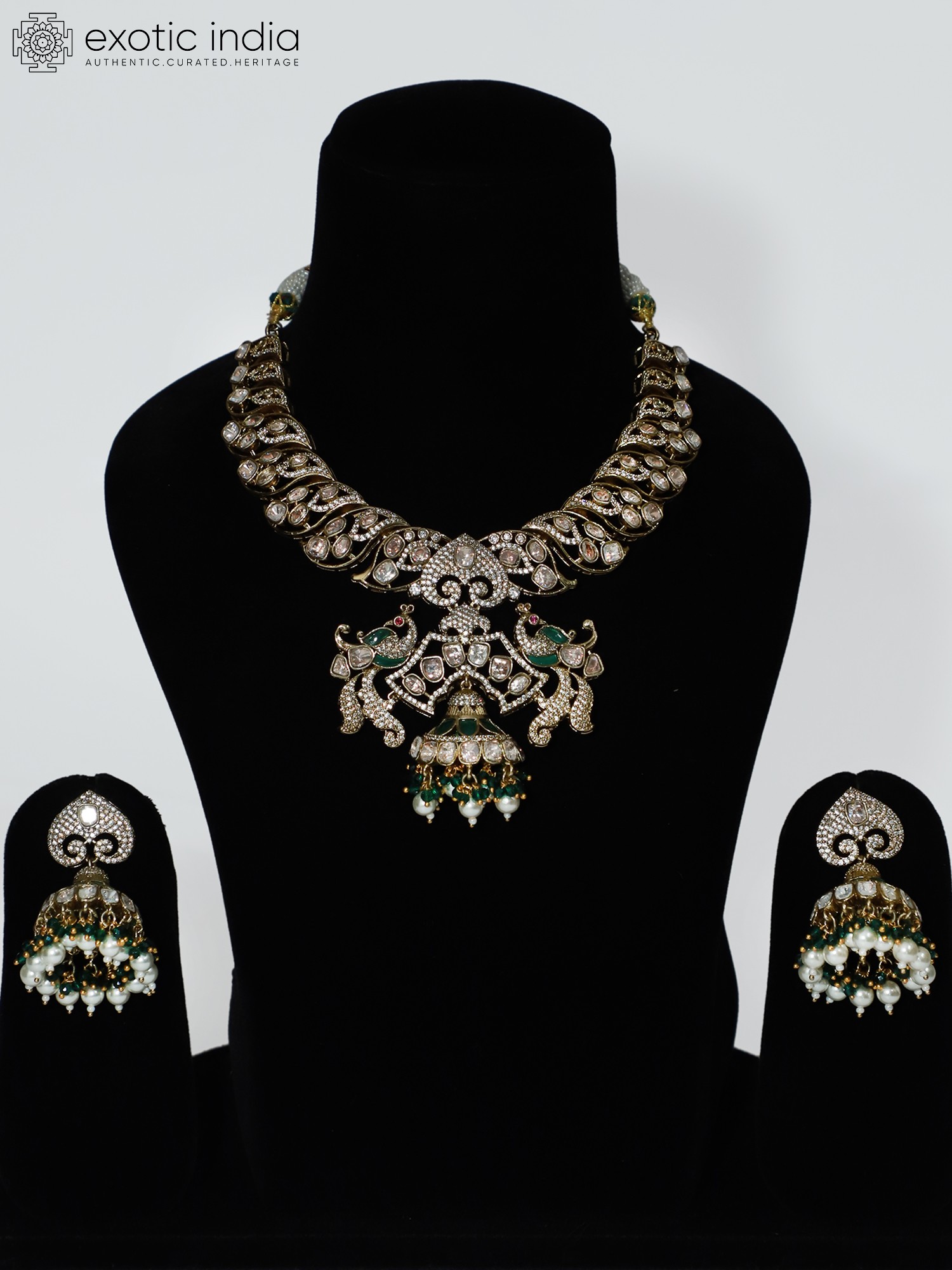 This Peacock Design Embellished and Beaded Copper and Kundan Necklace Set is more than just a beautiful piece of jewelry; it's an heirloom waiting to be cherished. Its exquisite craftsmanship and timeless design ensure it will remain a treasured possession for years to come, a reminder of your elegance and style. This is a perfect gift for yourself or a loved one who appreciates the beauty and artistry of traditional Indian jewelry. Order yours today and experience the magic of Exotic India.