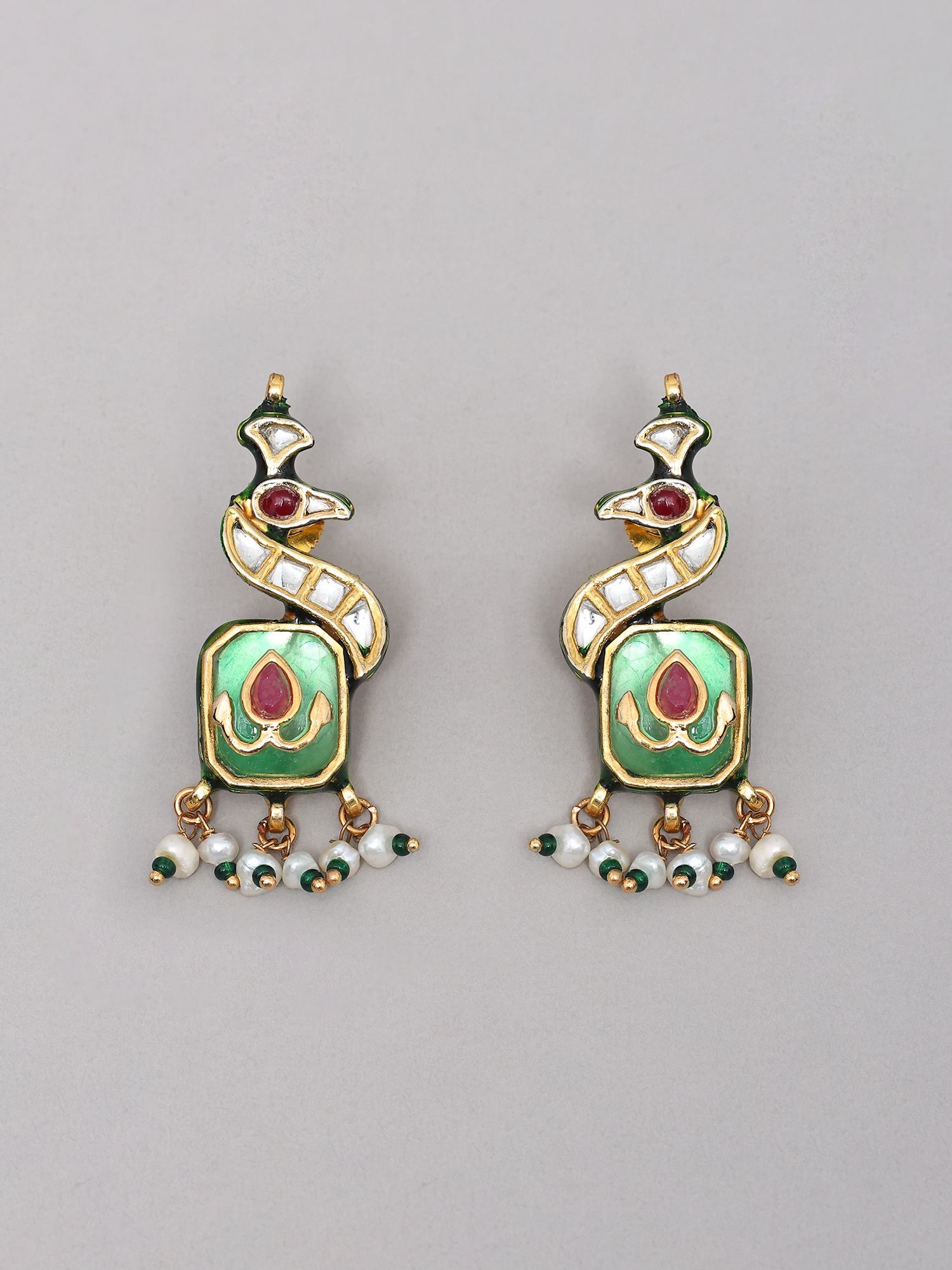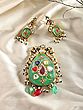 Teardrop Cut Polki Studded Lacquer Pendant and Earring Set