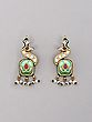 Peacock Motif Navratna Pendant and Earring Set with Pearl Accents