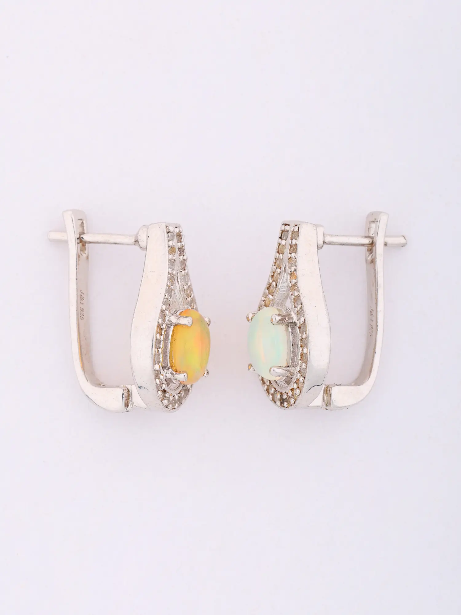 Each earring is a testament to meticulous artistry, meticulously crafted from lustrous sterling silver that provides a radiant backdrop for the gemstones. The pear-shaped opals, known for their mesmerizing play-of-color, are expertly faceted to capture and reflect light with every movement. This attention to detail ensures a piece that feels as substantial and luxurious as it appears.