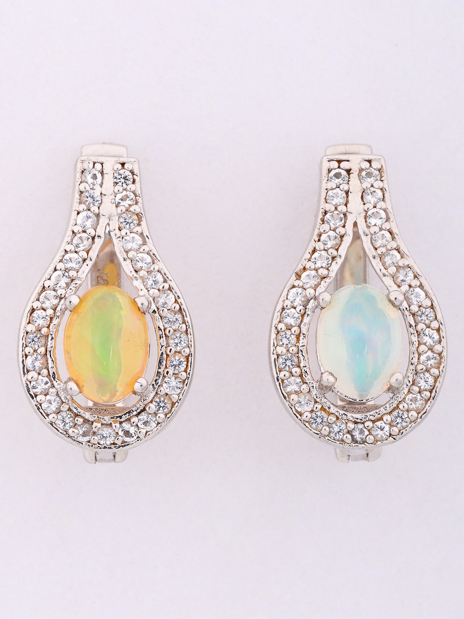 Sterling Silver Ethiopian Opal Stud Earrings with CZ Accents