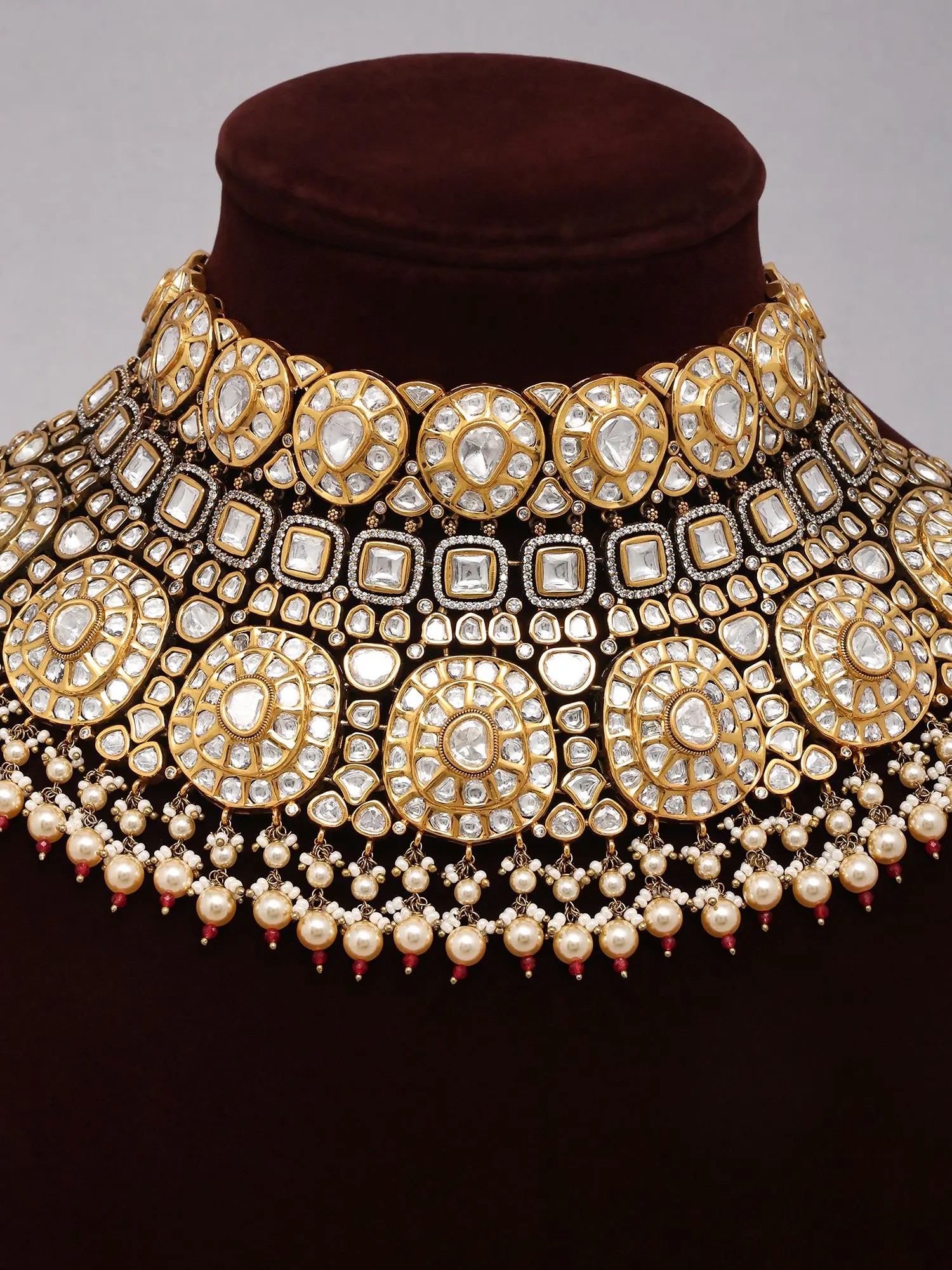 Pearl Drop Kundan Bridal Choker Necklace Set with Earrings and Maang Tikka