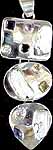 This distinctive pendant offers a unique blend of geometric shapes and organic inspiration. Crafted from radiant sterling silver, it showcases a cascade of three interconnected elements. At the top, a rectangular form anchors the design, its clean lines providing a modern counterpoint to the elements below. The center features an oval shape. Finally, the design culminates in a teardrop element, completing the balanced and harmonious composition. The interplay of light and shadow across the silver surface adds depth and dimension to the piece, ensuring it catches the eye from every angle.