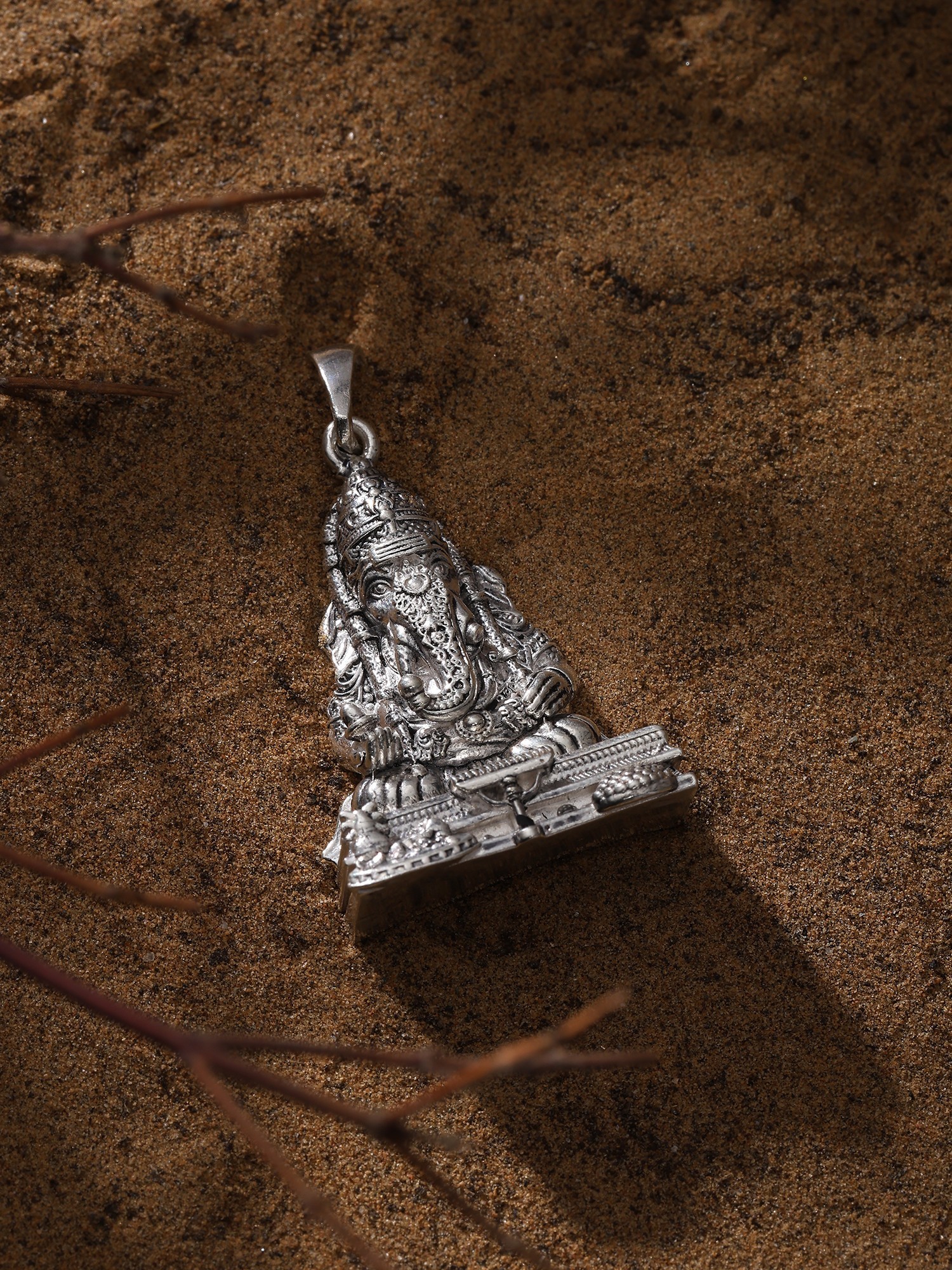 Deity Lord Ganesha Pendant from Nepal | Sterling Silver Jewelry