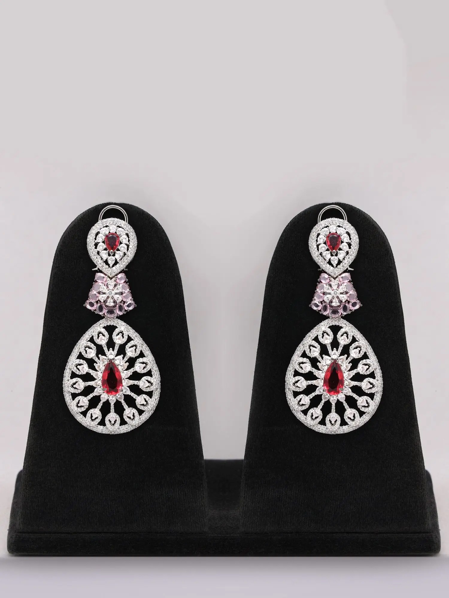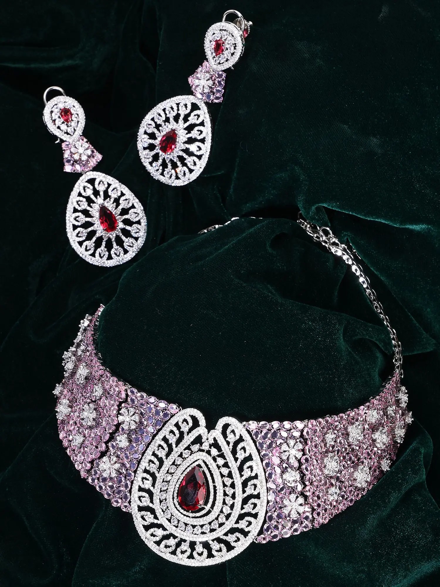 Purple Teardrop Design Stone Studded American Diamond Necklace Set