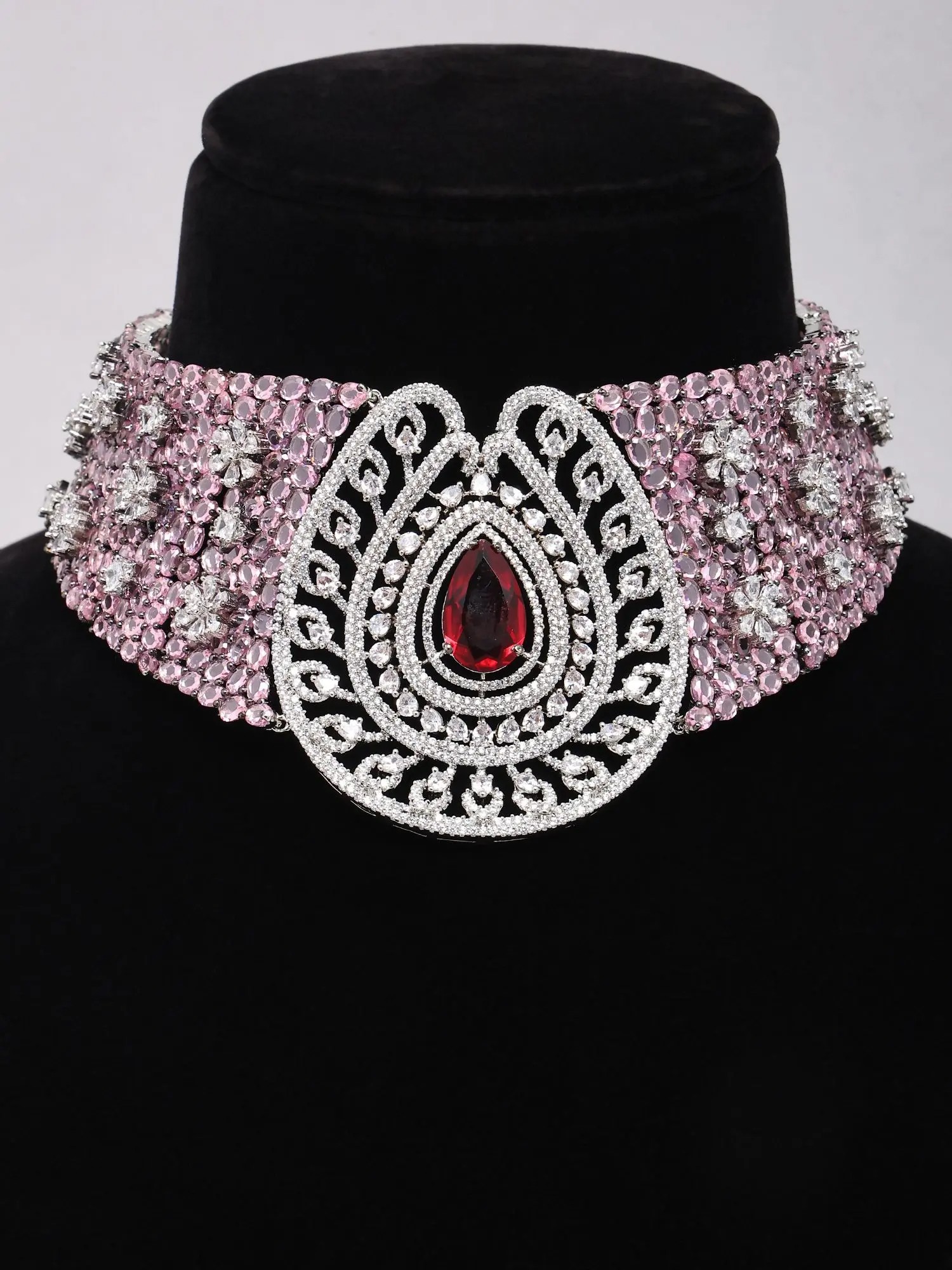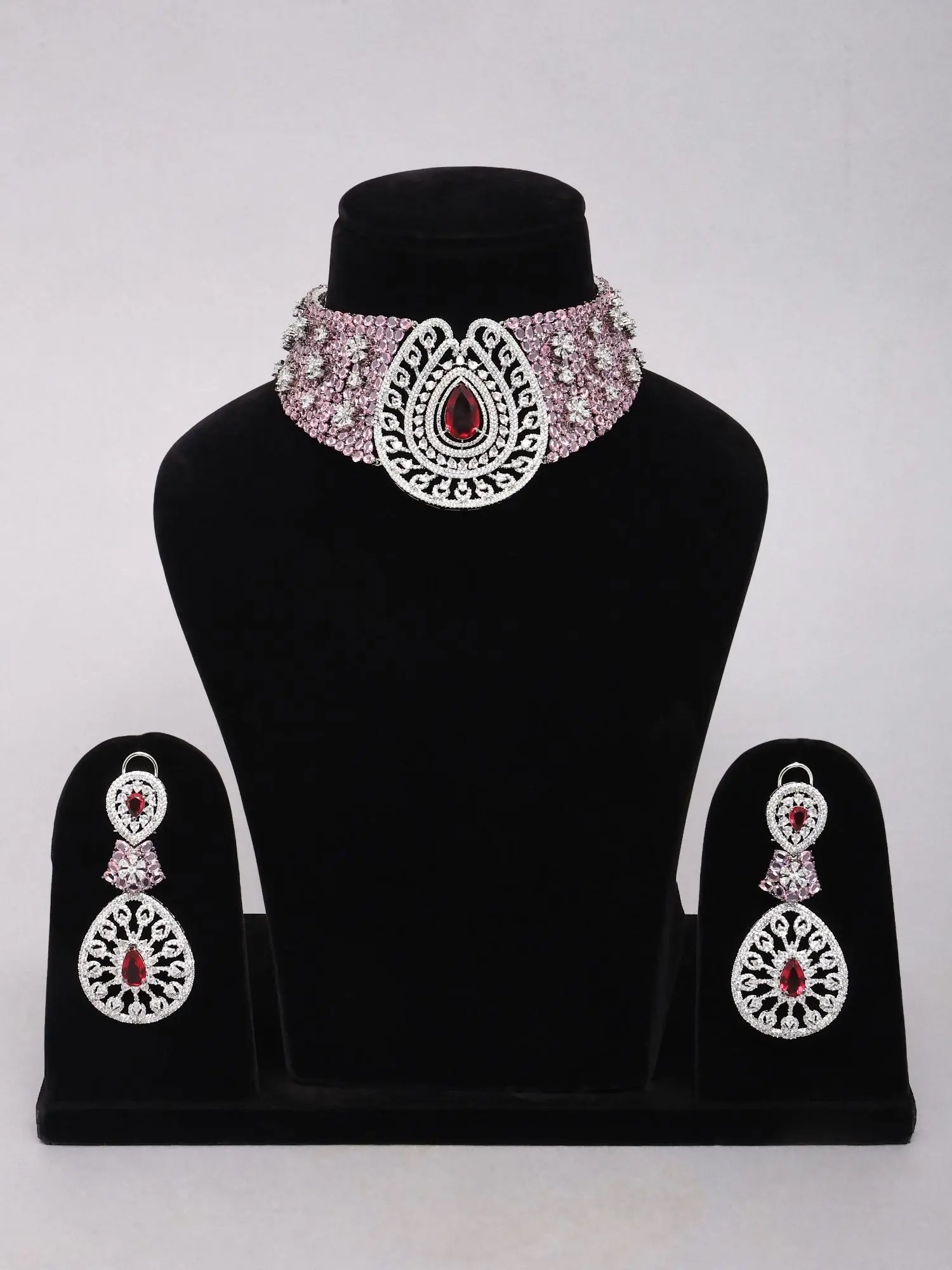 Pink American Diamond Stone Studded Necklace and Earring Set