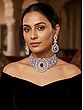 Embellished Stone Studded American Diamond Necklace Set With Earrings