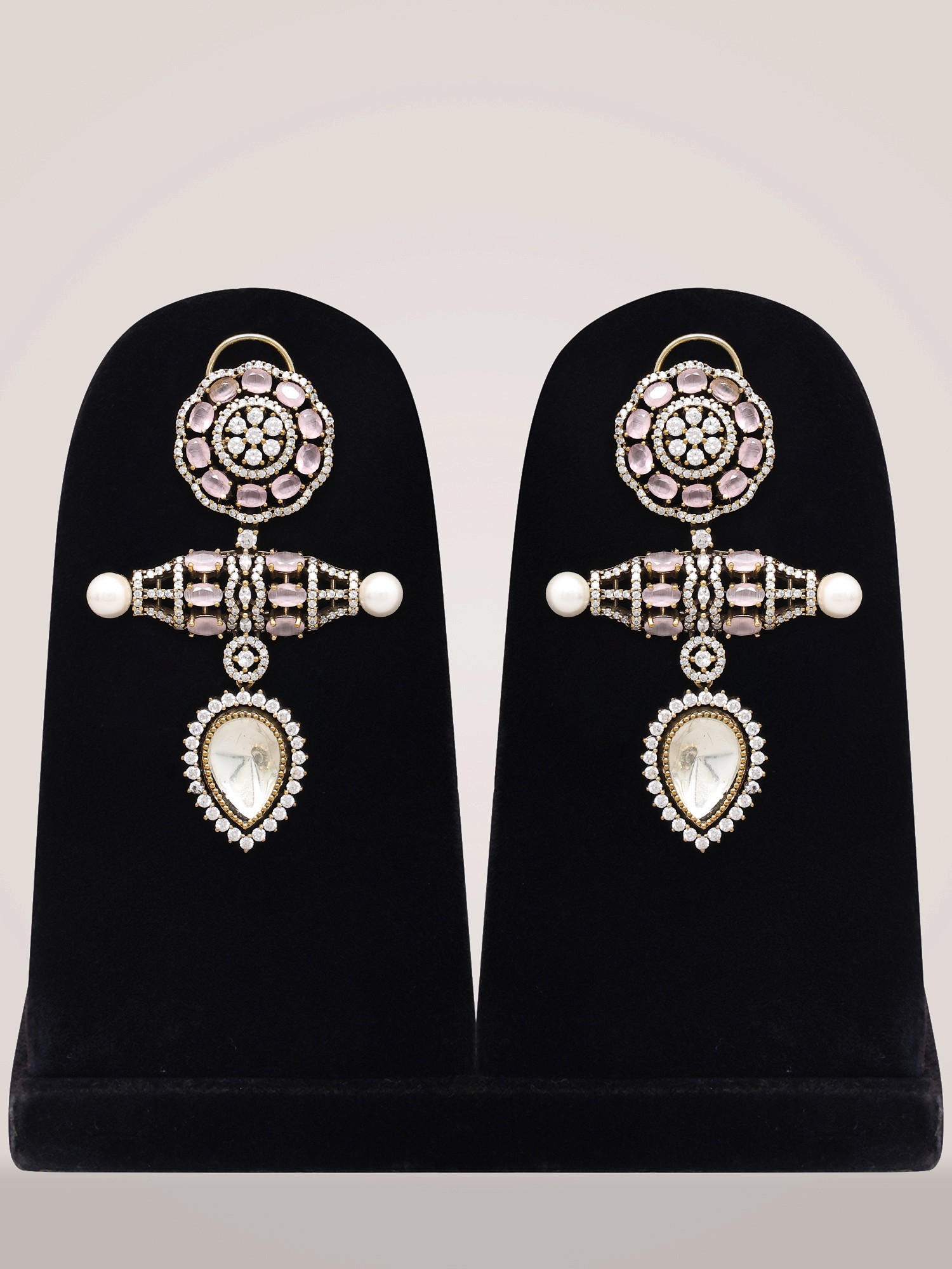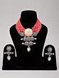 Pink Teardrop Stone Studded Kundan Necklace Set with Earrings