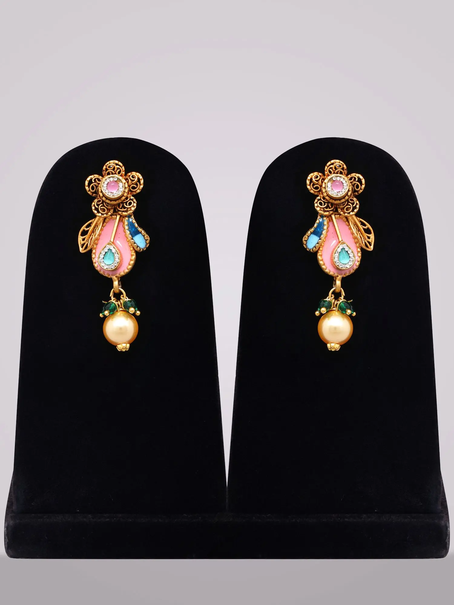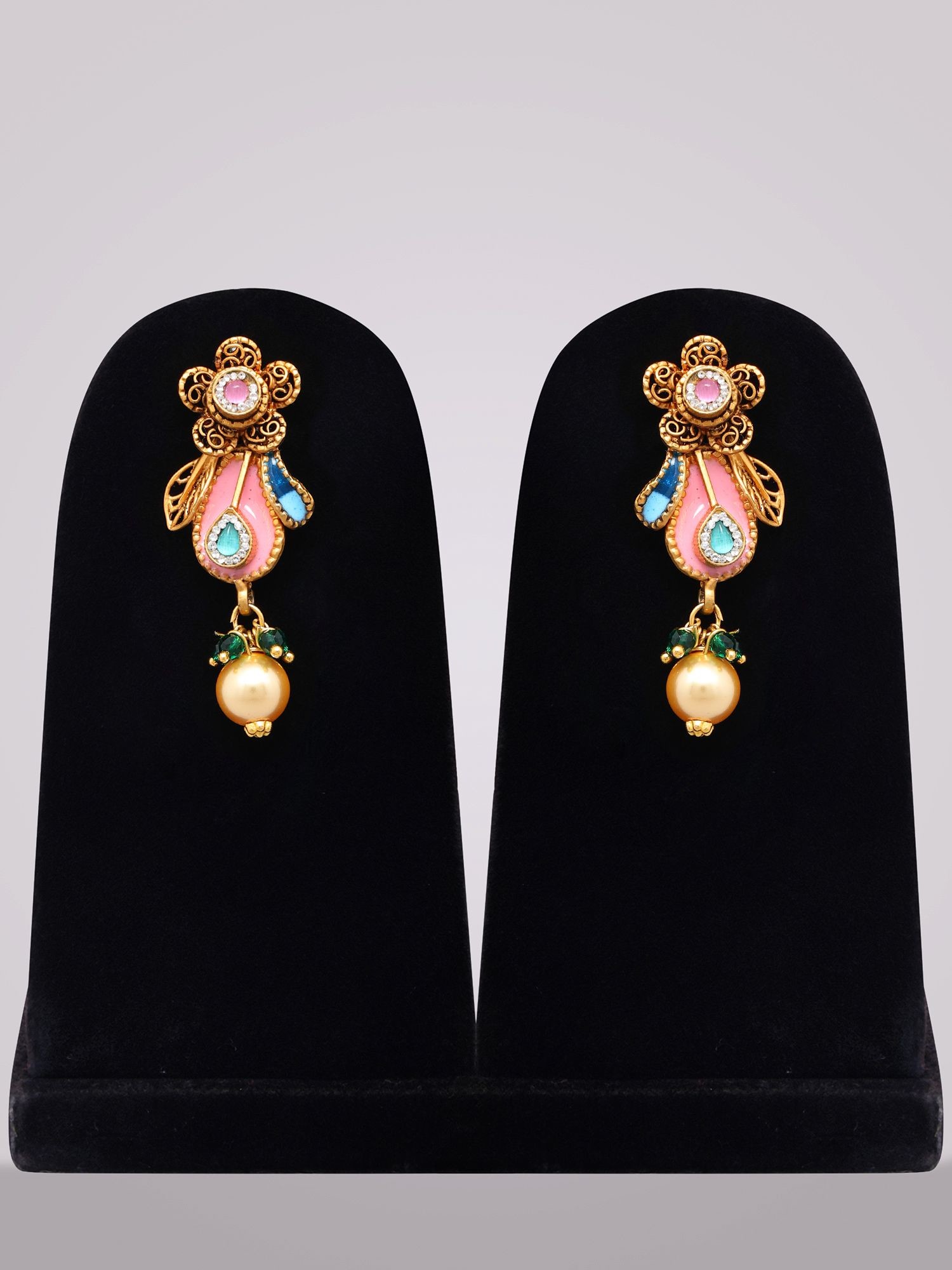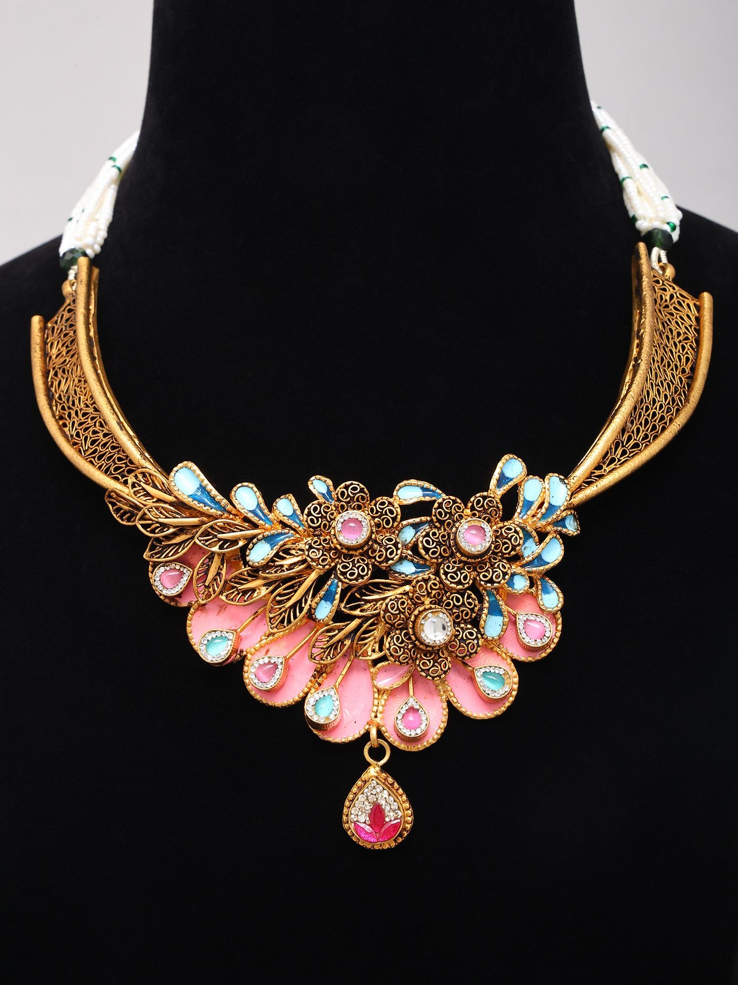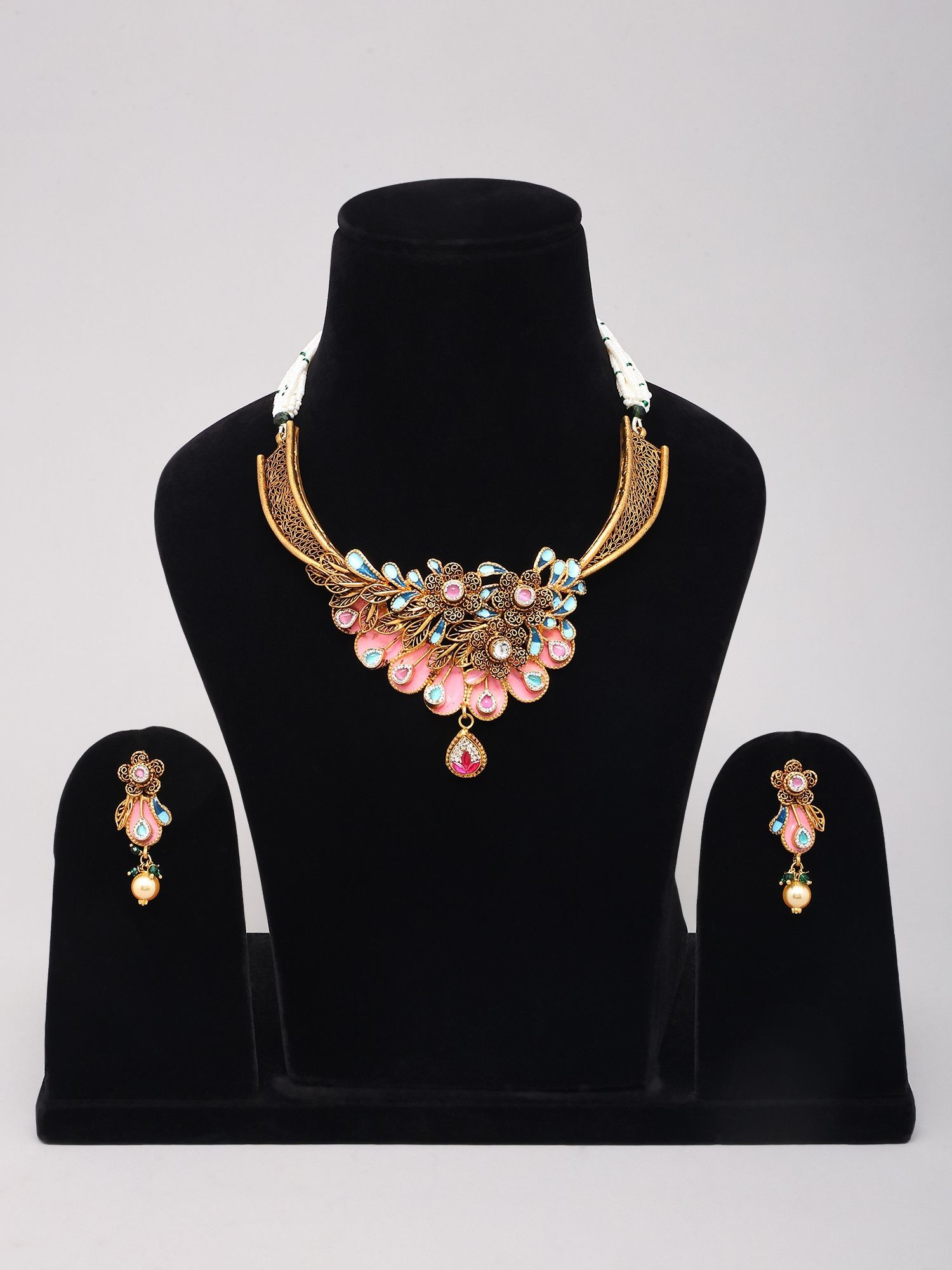 This style draws inspiration from rich artisanal traditions, where the fusion of enameling, filigree, and precious embellishments has been celebrated for centuries. The combination of these elements evokes a sense of regal heritage, making this set not just an accessory, but a wearable piece of history that connects you to generations of artistic expression.