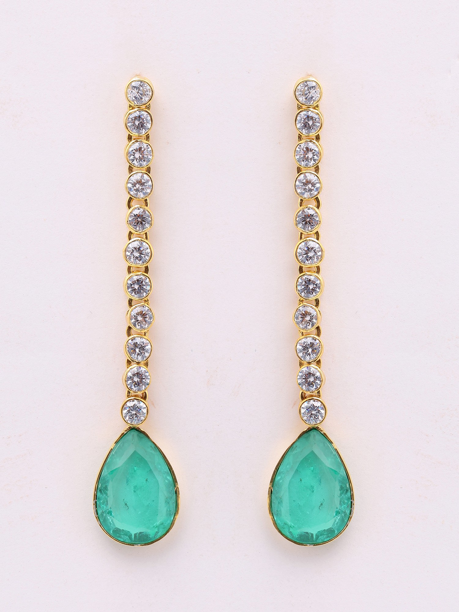 Stylish Long Sterling Silver Dangle Earring with Gemstone