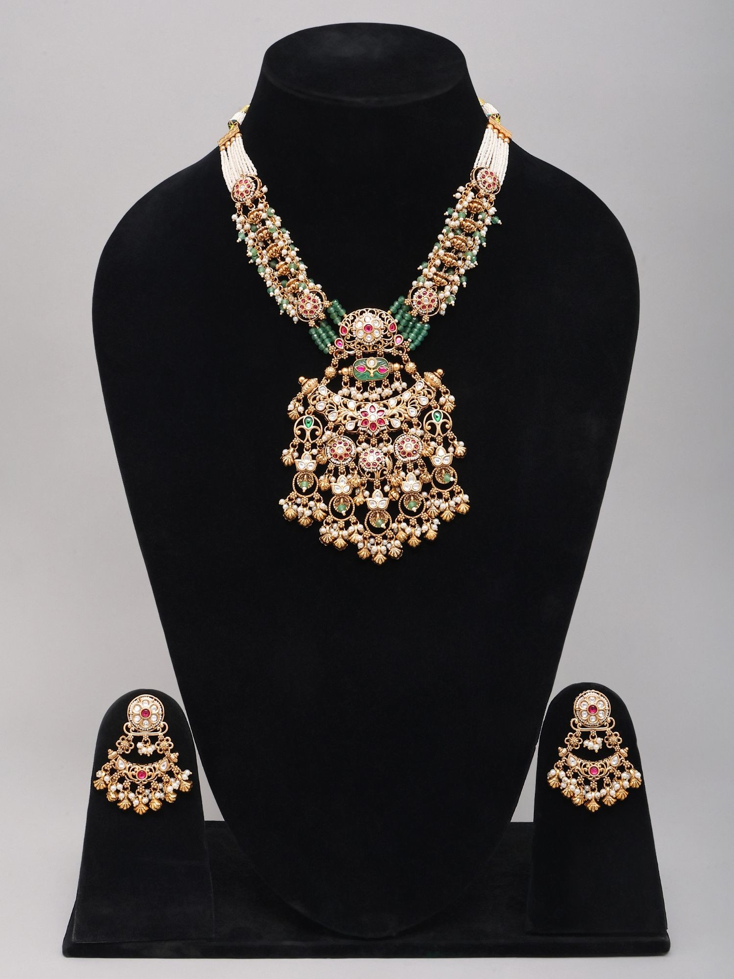Kundan and Stone Studded Radha Krishna Multi Strand Long Necklace Set with Earrings