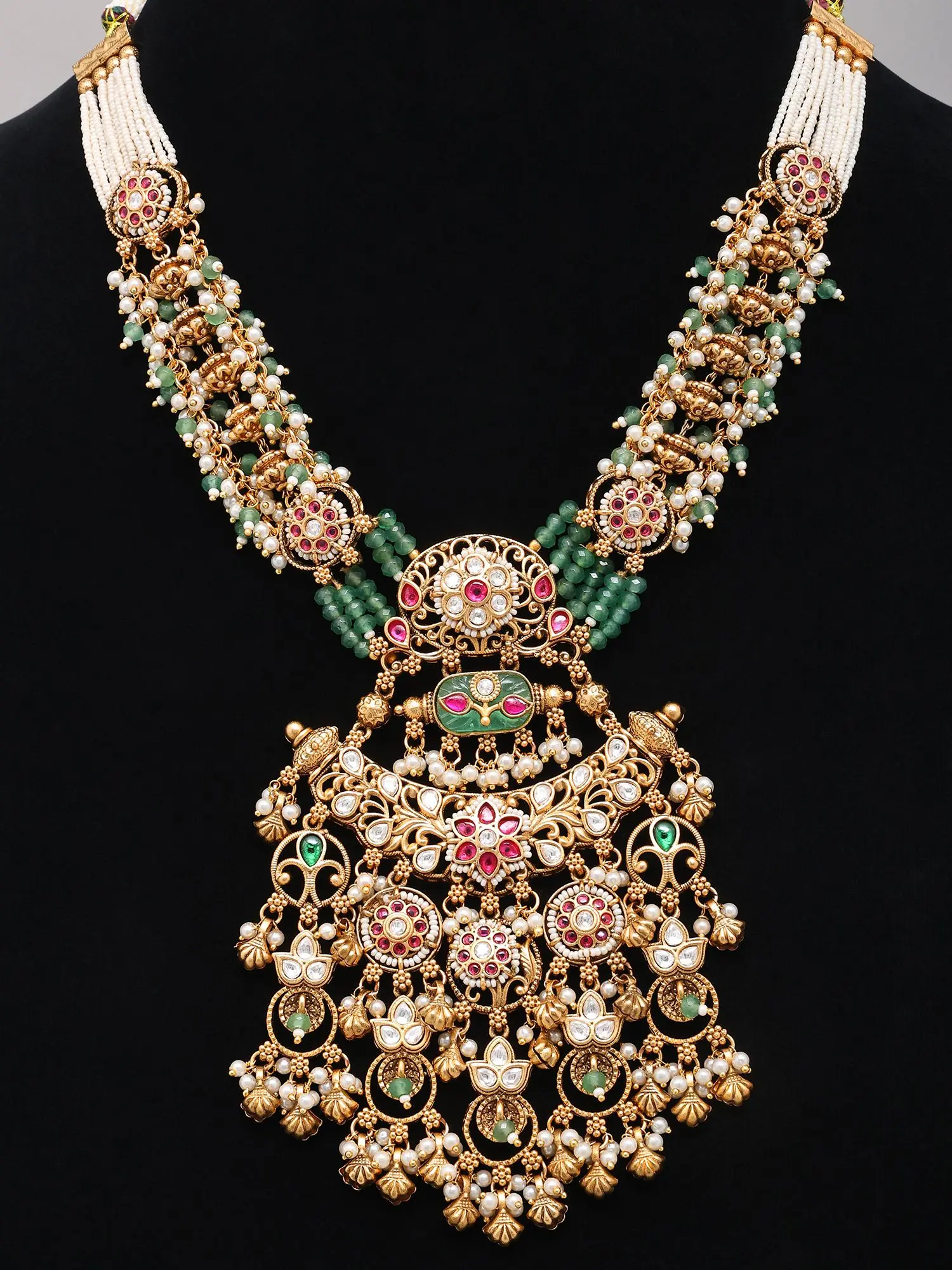 Meenakari Style Kundan Necklace Set with Multi-Strand Beads and Pastel Drops