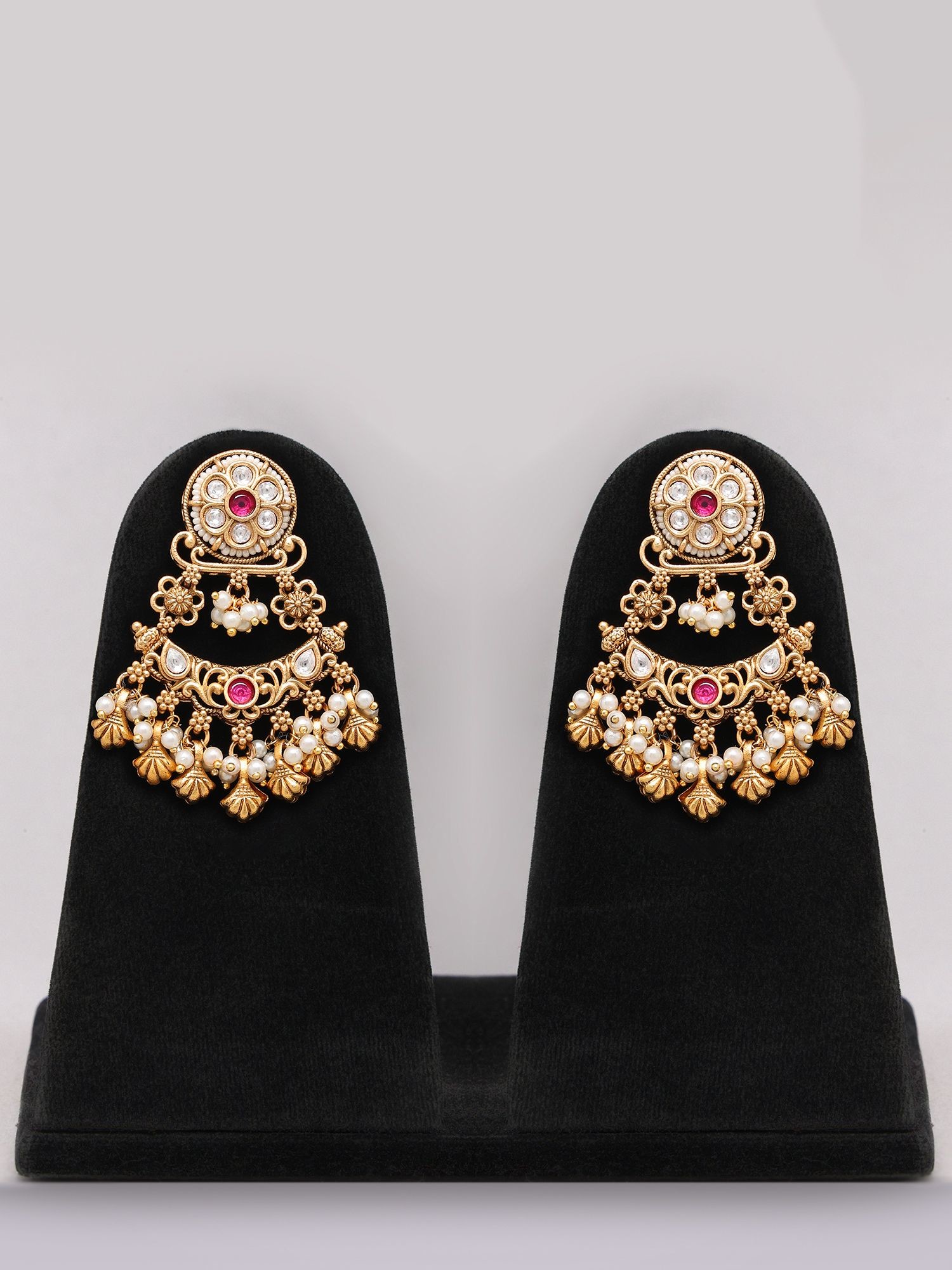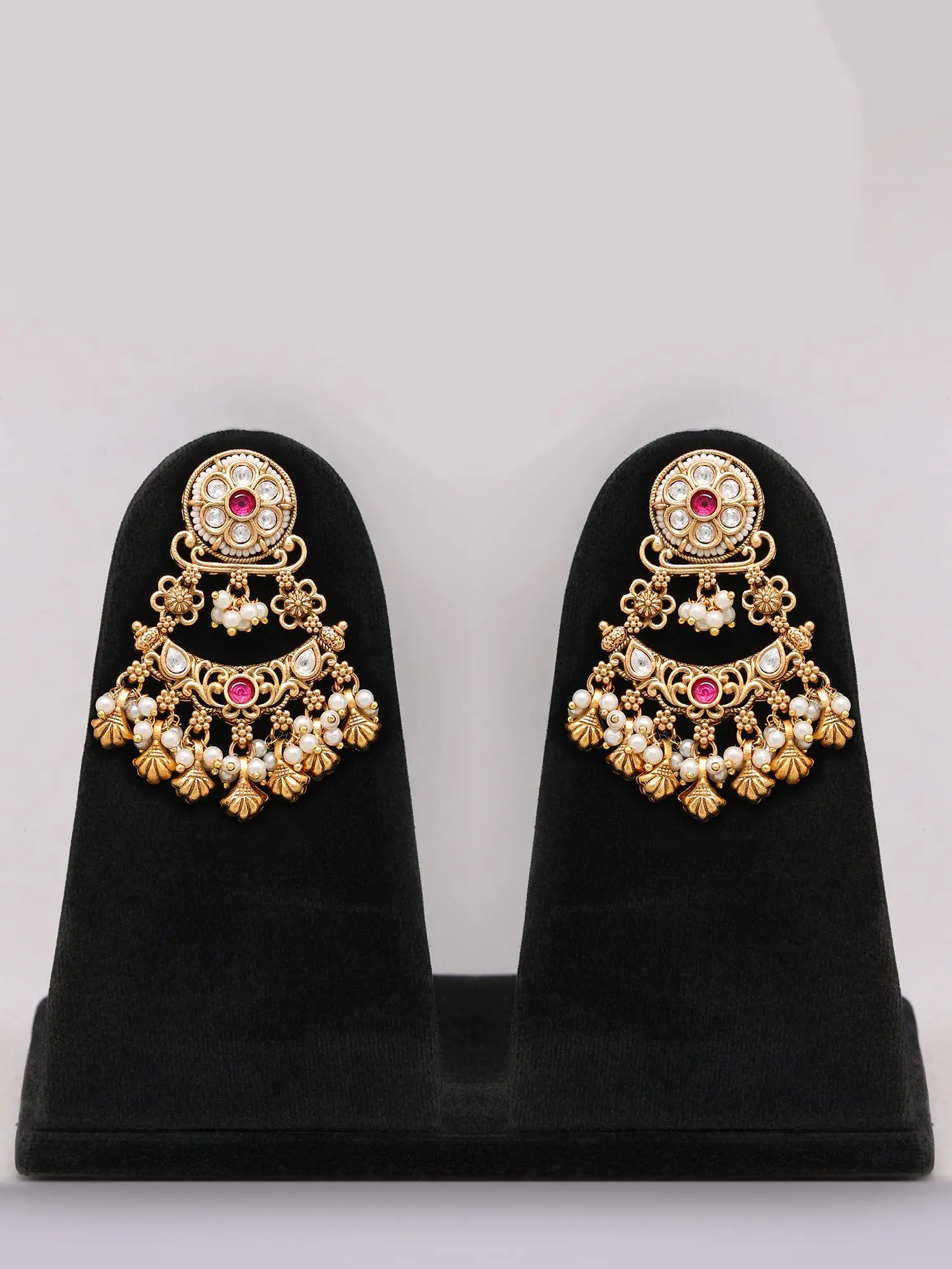 Polki Studded Lacquer Chandbali Earrings with Pearl Drops