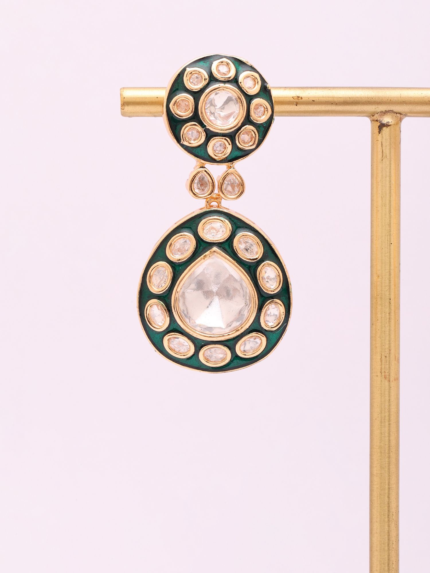 Features prominent clear Polki stones for brilliant sparkle.