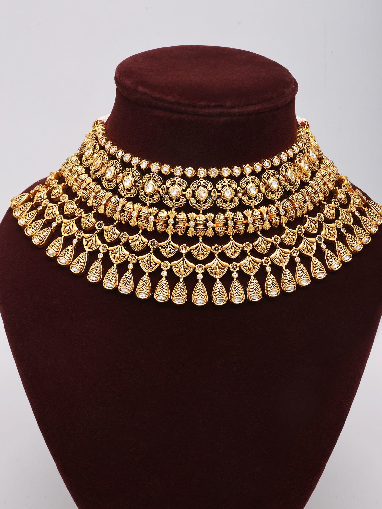 The choker's design offers a regal and elegant look, suitable for formal events.