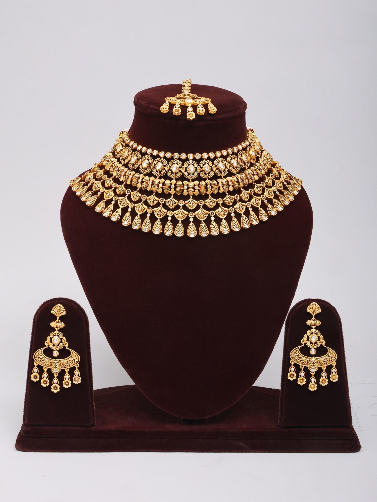 Includes a coordinating maang tikka to complete the traditional bridal ensemble.