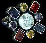 Silver ring, with Faceted Amethyst, Garnet, and Citrine